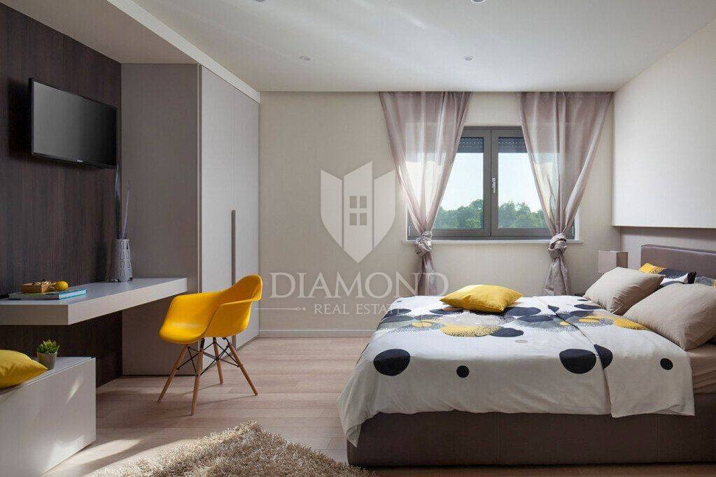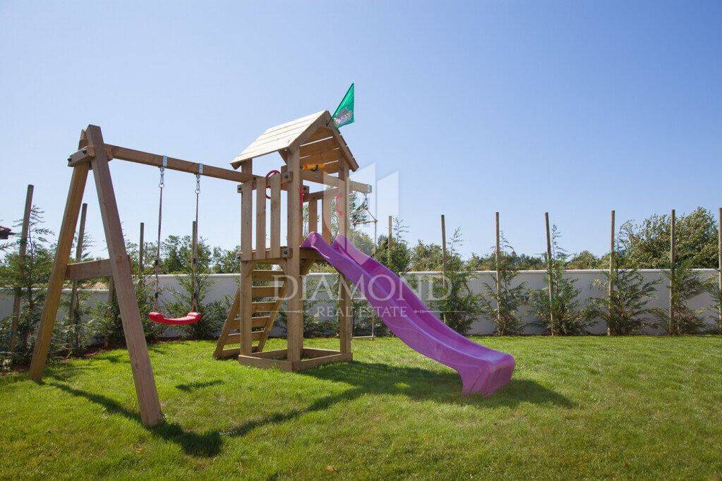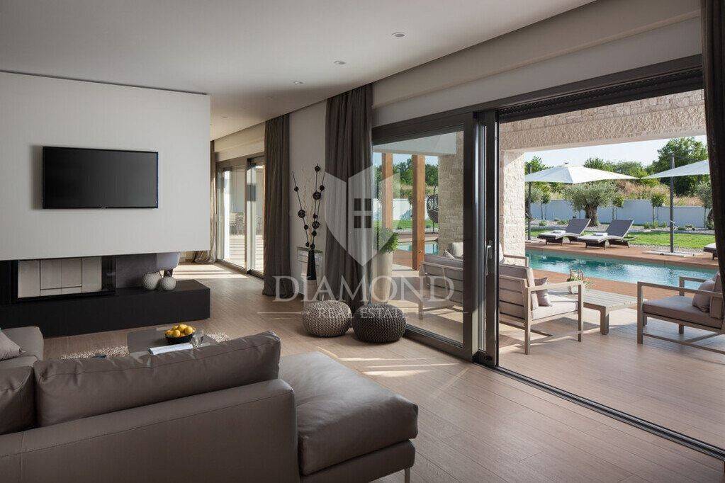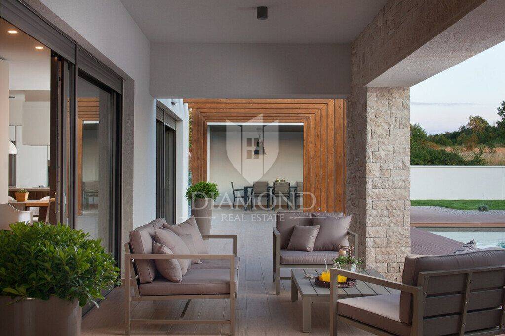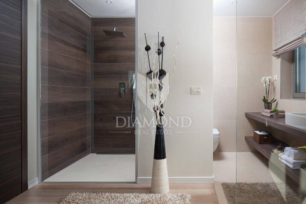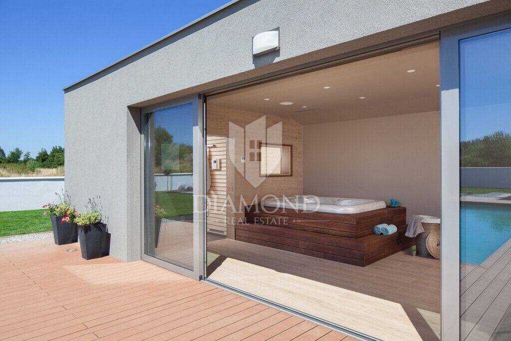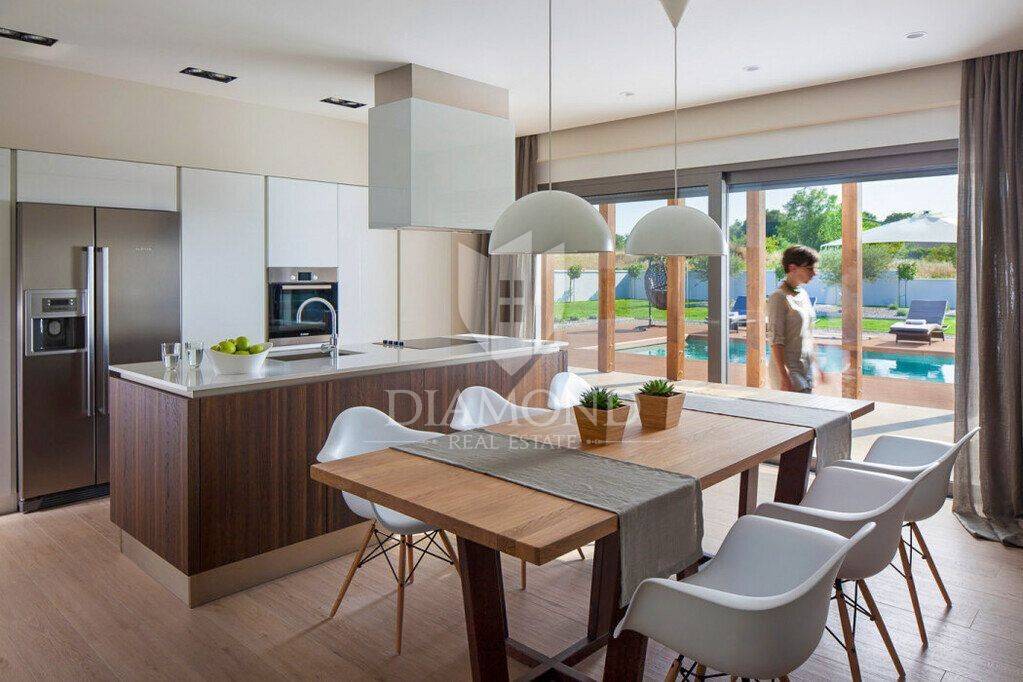 This beautiful villa is located in a small Istrian village, only 4 kilometers from the town of Labin and only 7 kilometers from the beautiful tourist town of Rabac. Villa of 220 square meters, consists of a modern kitchen with dining area, spacious living room with glass fireplace, toilet on the ground floor, and four bedrooms upstairs each with its own bathroom and terrace. The kitchen and living room open onto a covered terrace, where there is a space for socializing in the warm summer months, a summer kitchen and a large pool of 45 square meters. The villa also has a sauna, jacuzzi and children’s playroom. It is air conditioned, fully and modernly furnished with selected and quality furniture, in a quiet and idyllic location, both for living and for tourist purposes.