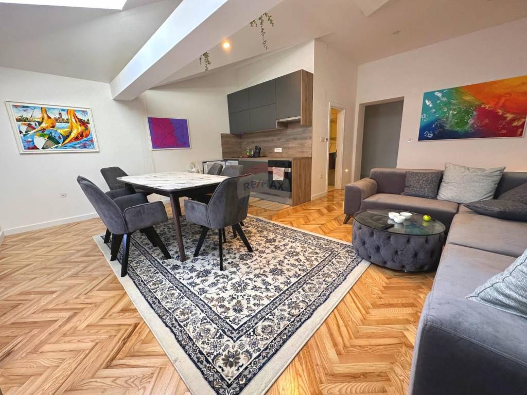 The apartment is located on the 2nd floor (high attic) of a beautiful Opatija Villa with a total of 14 residential units, a neat facade and a new roof! The apartment is located in a high attic (2nd floor), with a net living area of 62.37m2.
