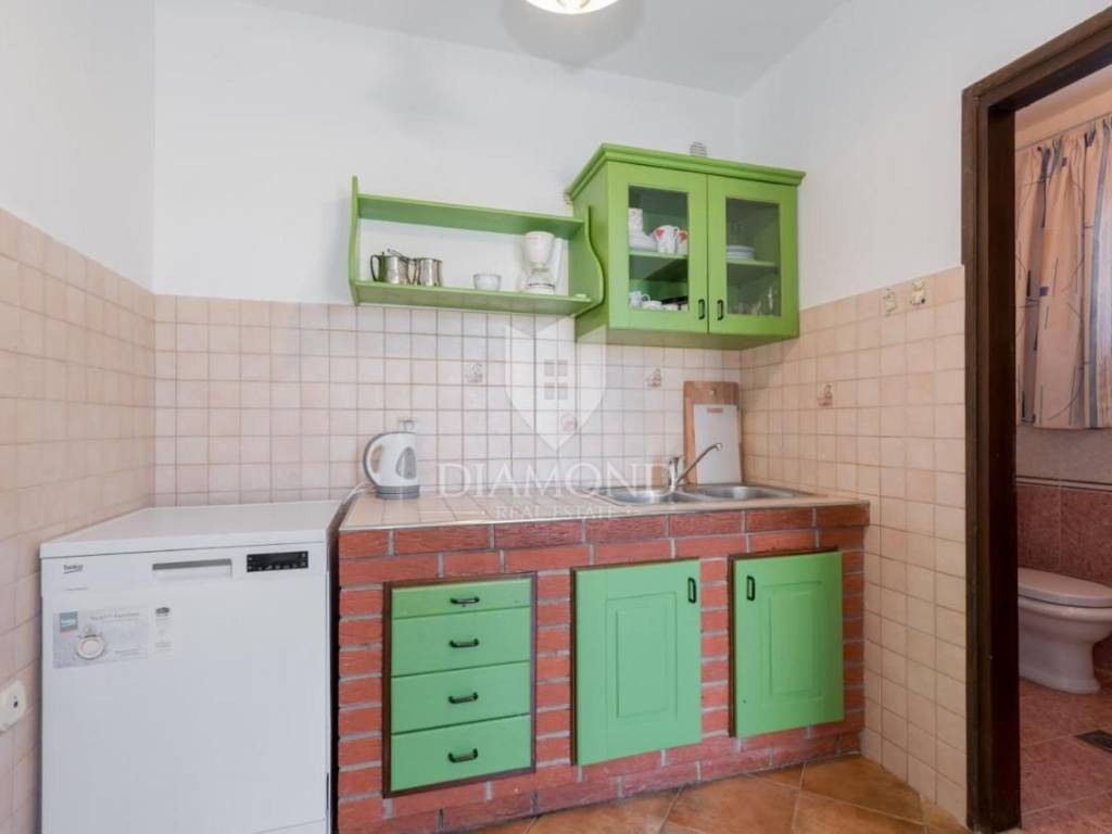 Perfectly positioned in the immediate vicinity of Labin, this spacious house extends over three floors with a total area of 200 m2. In the basement, on 70.5 m2, there is a fully equipped kitchen and bathroom, a spacious room with a fireplace and a place to relax. There is also a separate room that serves as a studio apartment with access to the terrace, where there is also a sun deck by the pool, offering a stunning view of the sea. The boiler room and storage room are also located in the basement.