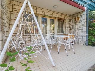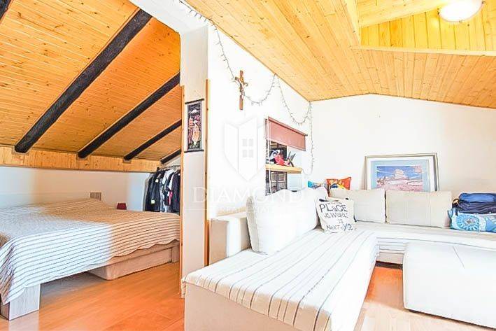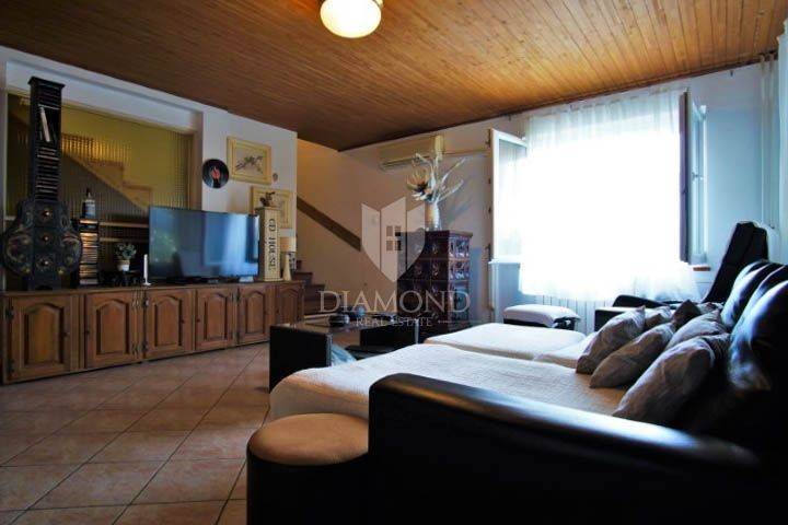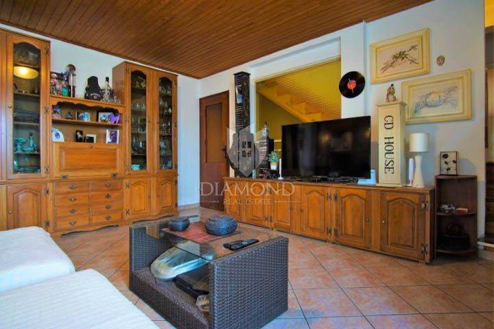 The apartment on the ground floor consists of an entrance hall, living room with dining room, kitchen, terrace, one bedroom and one bathroom. The kitchen and the living room are separated by a wall that can be torn down and everything can be turned into a nice open concept living area. On the first floor there is an apartment of 130m2, spread over two floors. On the first floor of the apartment there is one room with a fireplace for socializing and enjoyment, a large and pleasant living room, a kitchen with a dining room, a bathroom, a toilet and two bedrooms with balconies. On the second floor of the apartment there is another bedroom with a living room and a bathroom. The mentioned bedroom is in a high attic and has access to a terrace with a view of the sea and the old town. The apartment is air-conditioned, it is used centrally on oil, while there is also a potash stove in the living room.