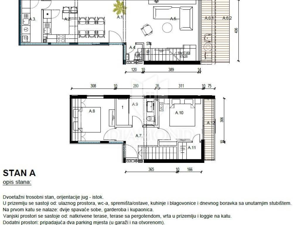 in a quiet location in Rovinj, in a new building surrounded by residential buildings and houses, we are selling this excellent apartment on two floors with its own garden. To the center of Rovinj, where you can experience one of the world's best tourist offers, which leads the way in its wide range of cultural, gastronomic and entertainment content. Other amenities that are important for a high quality of life, such as shops, pharmacies, a health center, and a school, are located within a short walking or driving distance.