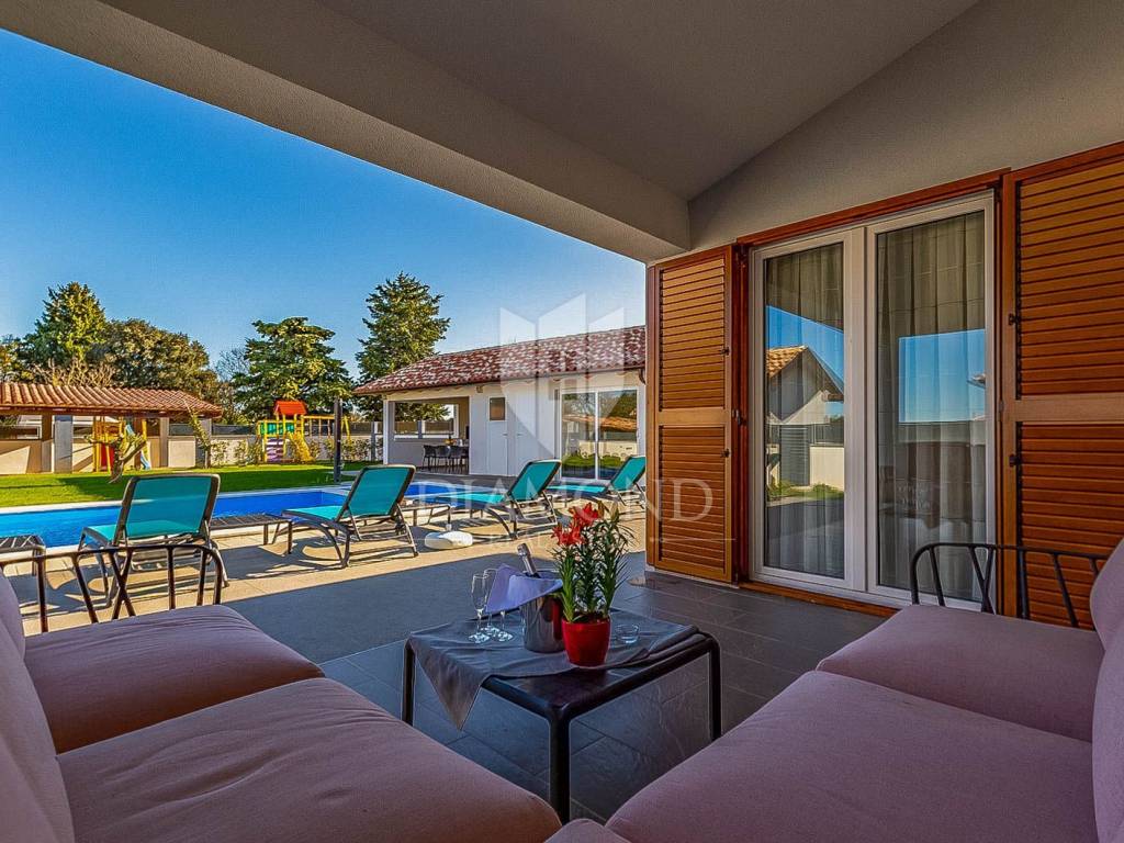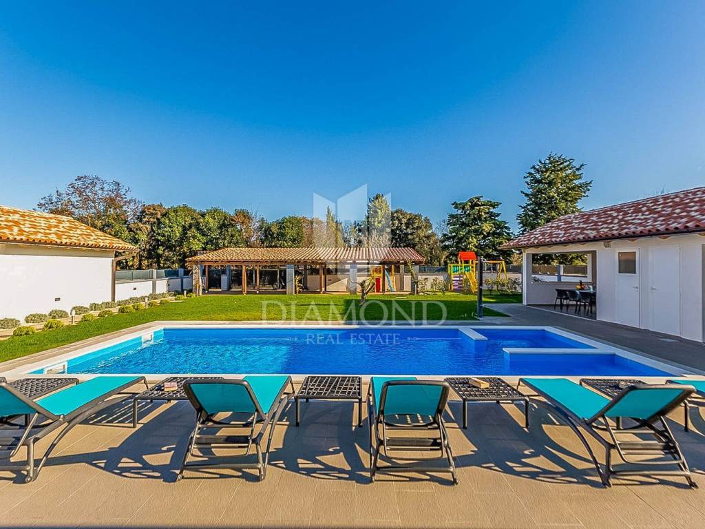 The yard of the house has everything you could wish for, and it is decorated and refined with Mediterranean plants. There are also summer kitchens with all the necessary appliances, a boiler room, an outdoor toilet, a wellness area with a sauna and a fitness center, and a children's playground. There is a 50m2 swimming pool in the very center.