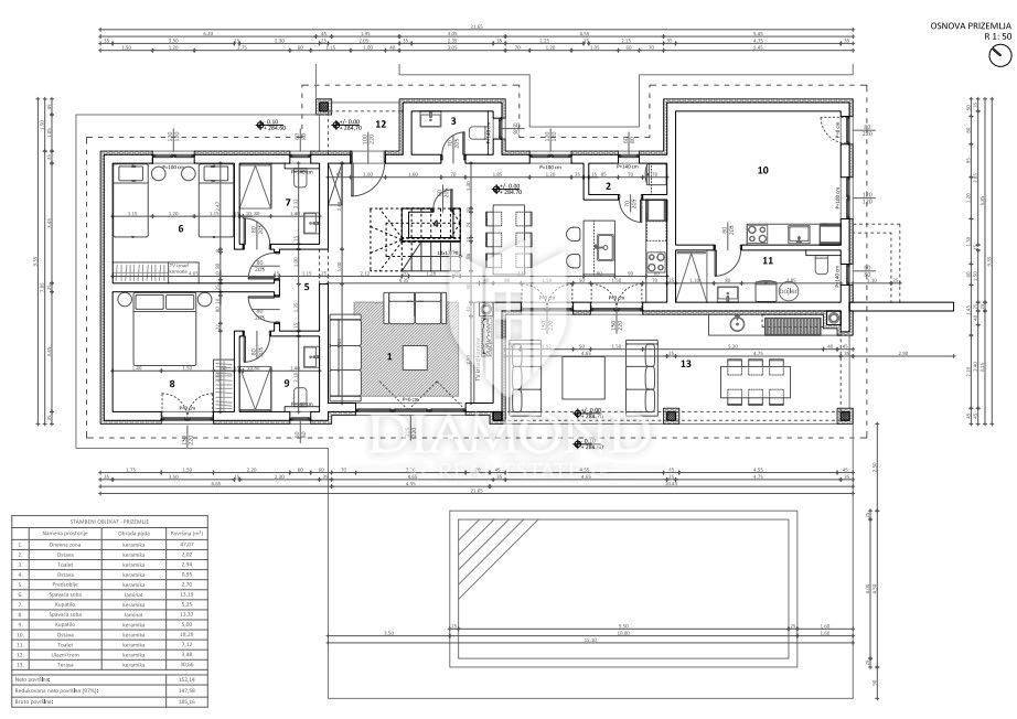 In its nature, this spacious two-story house on the ground floor contains an open space in which the entrance leads to the living room connected to the dining room and kitchen, and with two exits to the covered terrace and garden. This space is dominated by the staircase to the upper floor where there is one bedroom and a spacious bathroom. In the continuation of the ground floor, there are two more bedrooms with their own bathrooms, one of which has access to the garden. Next to the house there is a completely separate studio apartment equipped and ready for living. The plot on which it is located is 718m2, where there is a heated swimming pool of 32m2, a green area for outdoor enjoyment and enough space for parking three cars.
