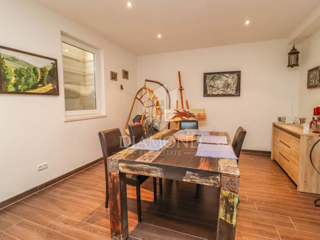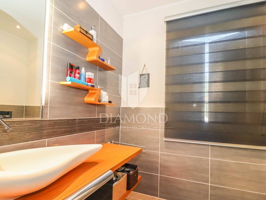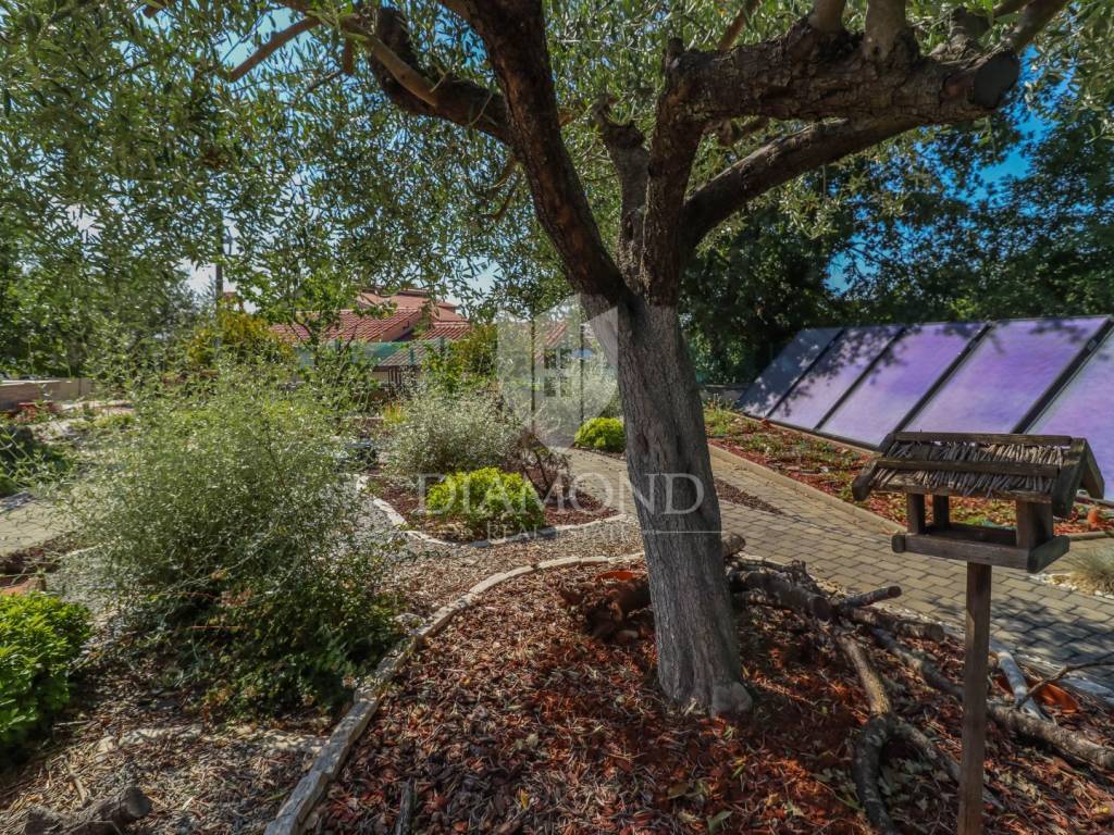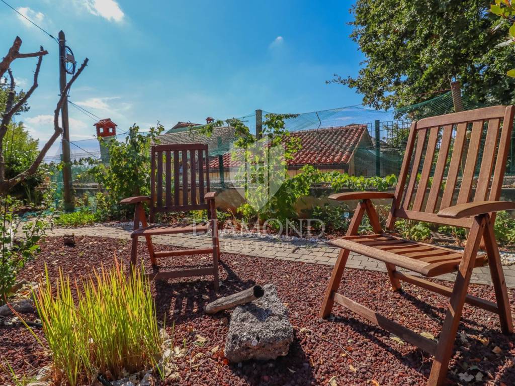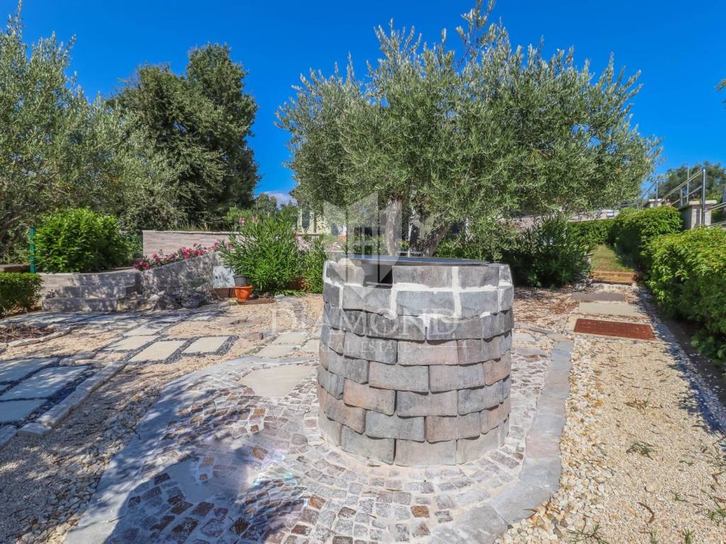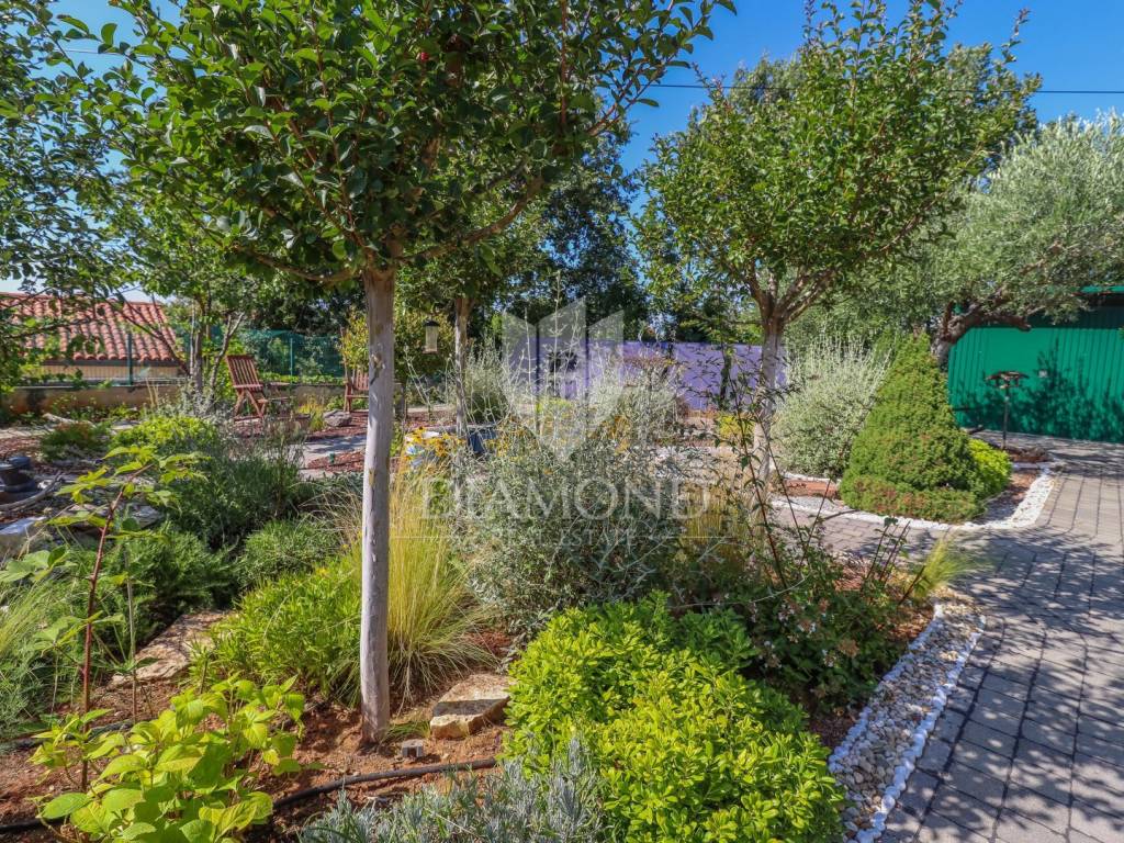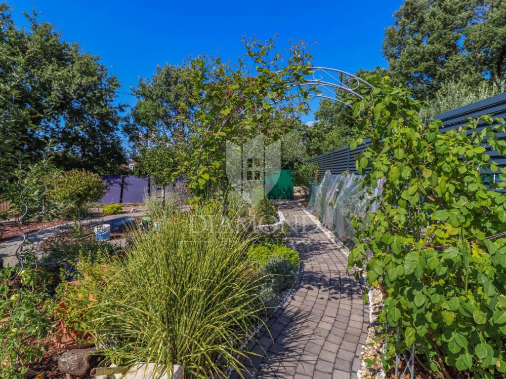 The yard is landscaped, has several zones for relaxation, a small garden for household needs, and all of this is fenced and protected from view. The entire garden is cultivated with Mediterranean plants. Even 2 parking spaces are provided for your tin pets on the covered part, and it is possible to park up to 3 cars on the uncovered part as well. Also, the entrance to the garden is through an automated gate.