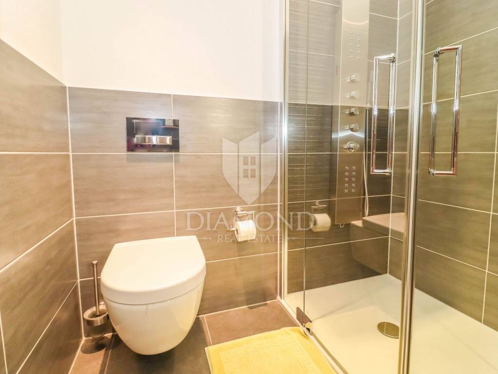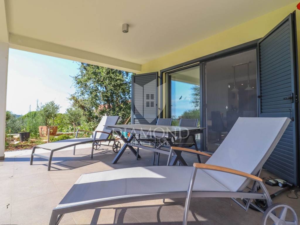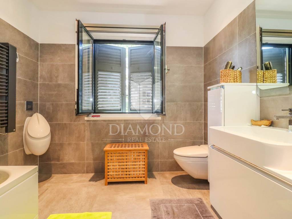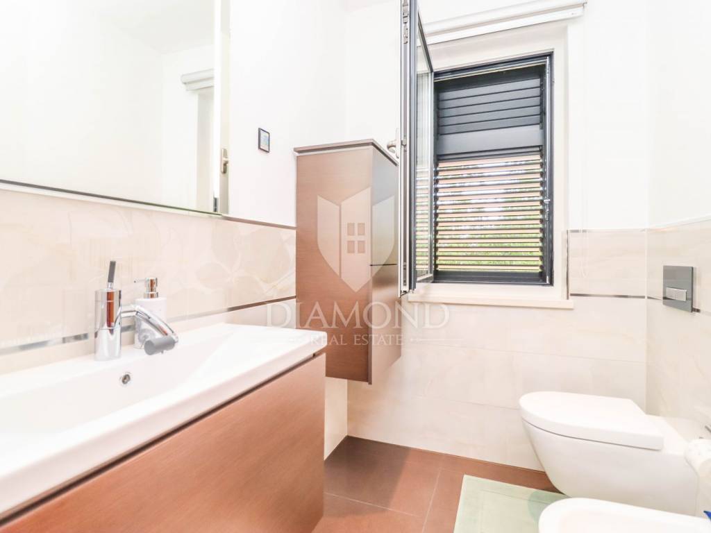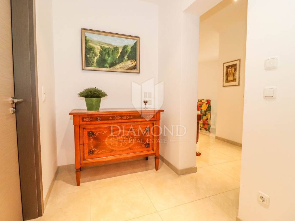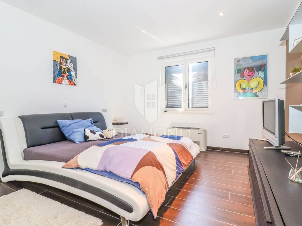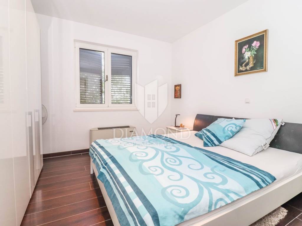 The yard is landscaped, has several zones for relaxation, a small garden for household needs, and all of this is fenced and protected from view. The entire garden is cultivated with Mediterranean plants. Even 2 parking spaces are provided for your tin pets on the covered part, and it is possible to park up to 3 cars on the uncovered part as well. Also, the entrance to the garden is through an automated gate.