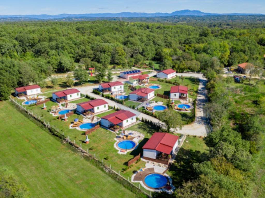 U blizini Kringe i Tinjana prodaje se turstičko naselje koje se sastoji od 11 montažnih kuća od kojih su dvije osmišljene kao zajedniči prostori gdje se služe obroci, druženja, recepcija, vešeraj i slično a ostalih devet su kuće prizemnice na parcelama od 500 kvadratnih metara svaka ukupne površine 70 kvadratnih metara. Svaka kuća se sastoji od dnevnog broavka sa kuhinjom i blagovaonicom, dvije spavaće sobe, kupaonice i natkrivene terase s koje se silazi u prostor ugodno uređene okućnice gdje se nalazi prostor za sunčanje, bazen promjera 5 metara i 1,3 metra dubine te vanjski tuš. Za zajedničko korištenje naselje ime dječiji bazen, park, stolove za stolni tenis i igralište za mini golf, košarku i odbojku na pijesku. Cijelo naselje se prostire na građevinskoj parceli od 7455 kvadratnih metara a dio zabavnog sadržaja se nalazi na poljoprivrednoj parceli od 6176 kvadratna metra.