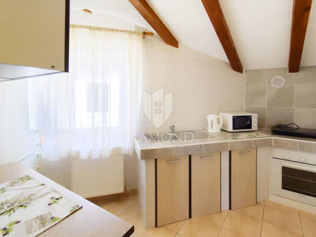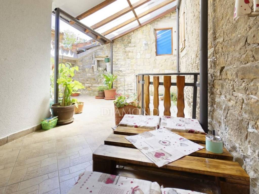 Istria, Momjan House for sale in the heart of Momjan, the house consists of 3 residential units and a beautiful tavern on the ground floor. The house has been completely renovated, mezzanine concrete slabs, new water and electricity installations have been installed. Due to its size with three residential units, a tavern that can also be a business space, the property is ideal for a larger family that needs a property with several residential units. The property can be used for tourist rental with a lot of potential as a Bed and Breakfast because of the tavern on the ground floor or just as an apartment house with a common space for socializing. On the ground floor of the house there is a tavern with a fireplace and a bar, the tavern can be converted into a business space depending on the needs of the new owner, a machine room with a central heating stove and a woodshed. On the first floor there is a spacious apartment over the entire floor, the apartment consists of a living room with a kitchen and a dining room, 2 bedrooms, a bathroom and 2 storage rooms. On the 2nd floor there is one smaller studio apartment with a bathroom and one apartment with two bedrooms, a living room, 2 bedrooms and a bathroom. Public parking for use is located right next to the property itself. Parking is public right next to the property. Heating is with central heating, and cooling is with air conditioning. The house is located in the very center of Momjan, next to the house there is a small market that offers enough groceries so that you don't need to go to another town, Momjan is famous for its wines and beautiful scenery, and in the immediate vicinity of the house there are many famous restaurants, agritourisms, wineries, shop, promenades, bicycle paths and various other facilities.