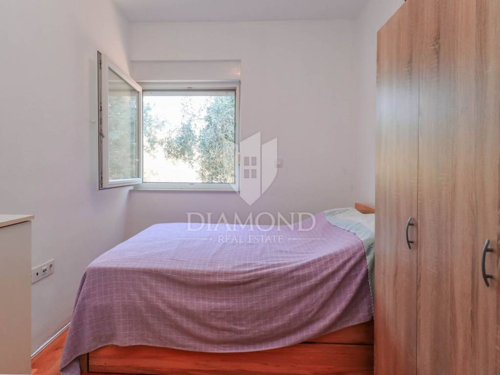 The apartment with a total net usable area of 77 m2 consists of a bathroom, toilet, kitchen, hallway, dining room and living room. There are also two bedrooms and a loggia that provides additional space. In addition, this apartment has its own storage room in the basement, which is extremely practical for storing things, and it also has its own parking space.