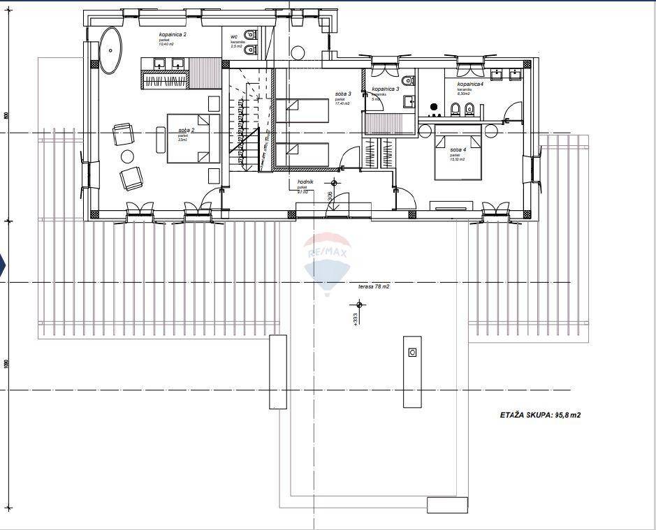 On the upper floor there are three more bedrooms and an entrance to the attic, which can be easily arranged according to the wishes of the future owner.