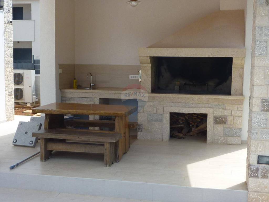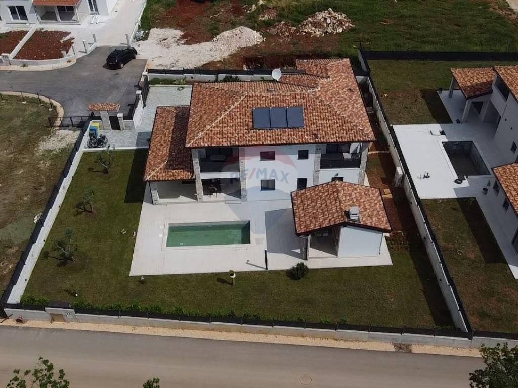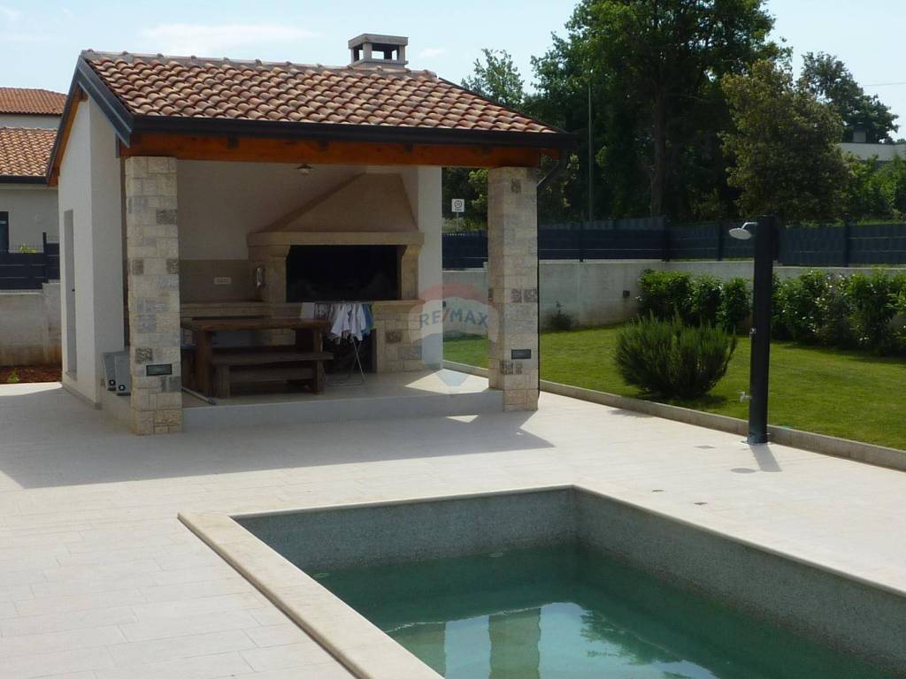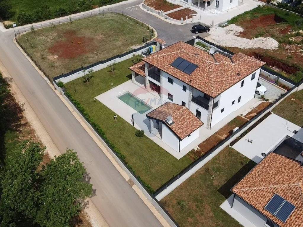 This beautiful villa with a swimming pool is located in the immediate vicinity of Poreč and all its facilities. The villa is located only 2 km from the center of Poreč and 1 km from the sea. The villa consists of of three apartments, one large one on the ground floor and two smaller ones on the first floor of the building. The apartment on the ground floor consists of a large living room, open concept kitchen and dining room, bathroom and toilet for guests, one bedroom with its own bathroom and access to the outdoor terrace and pool. The hallway leads to the entrance to the garage with an automatic door, which they allow you to enter the house from the garage so that in bad weather you can stay completely dry and protected from external influences. Through the large glass walls from the living room it leads to an outdoor covered terrace and pool, and an outdoor covered kitchen with a fireplace, grill and all other amenities for undisturbed enjoyment of the pool and garden the fairies themselves. A separate entrance leads to the floor where there are two one-room apartments each with a terrace, a living room, an open-concept kitchen and dining room, and a bedroom.