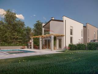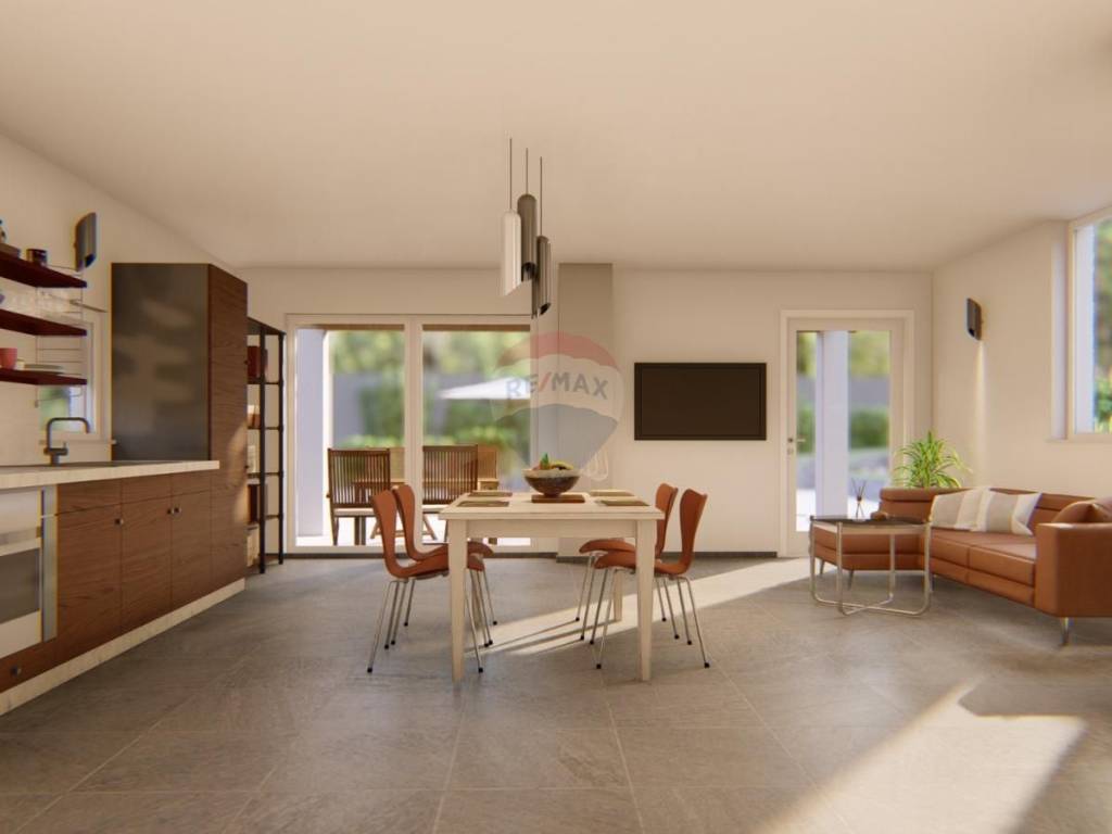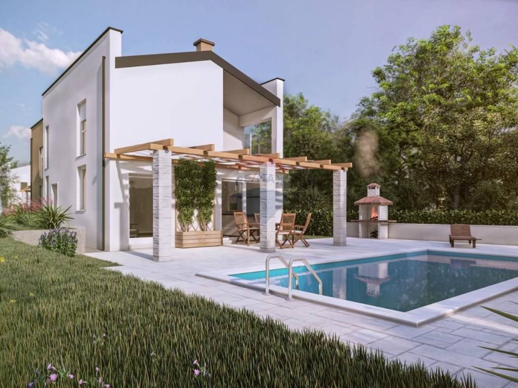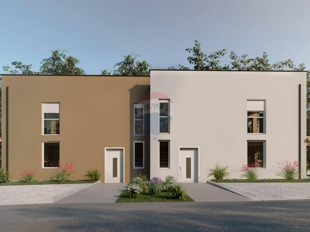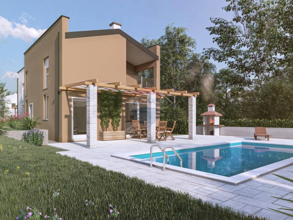 A semi-detached house for sale in the vicinity of Tinjan with a living area of 84 m2 and a garden of 250 m2. The ground floor consists of an open space consisting of a kitchen, a living room and a bathroom. The living room leads to the terrace and pool. On the first floor there are two bedrooms, a toilet and a laundry room. One bedroom has a balcony. Heating is planned for air conditioning, and at the same time, the first phase for central heating is also prepared. The house is suitable for family life due to its quiet location. It can also be used as an investment for tourist rental.