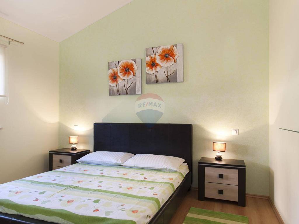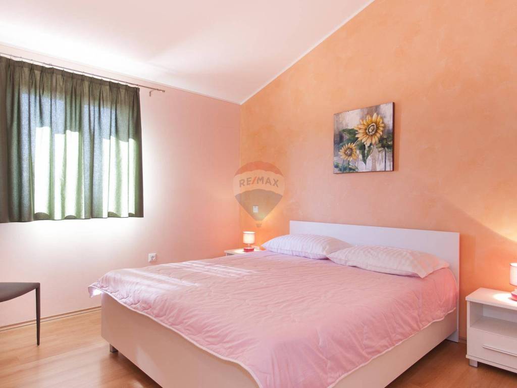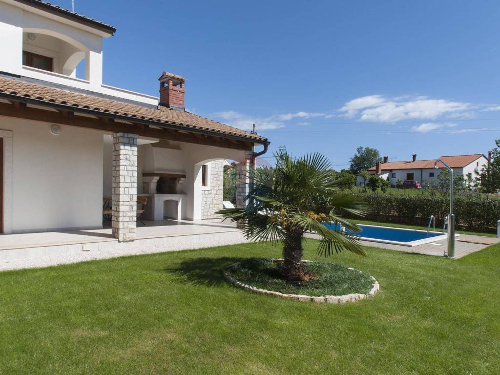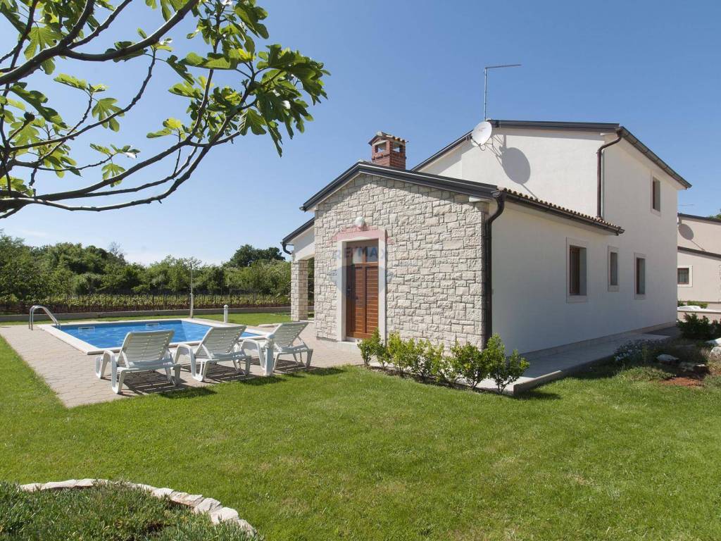 Re/Max Centar nekretnine offers a detached house with a swimming pool near Poreč. A detached house with a swimming pool is located near Poreč. Area 140 m2 with a garden of 434 m2 and a swimming pool of 24 m2. The house itself consists of an entrance hall, a large living room with a kitchen and dining room and a bathroom. One bedroom is on the ground floor, while the other two are located on the first floor.