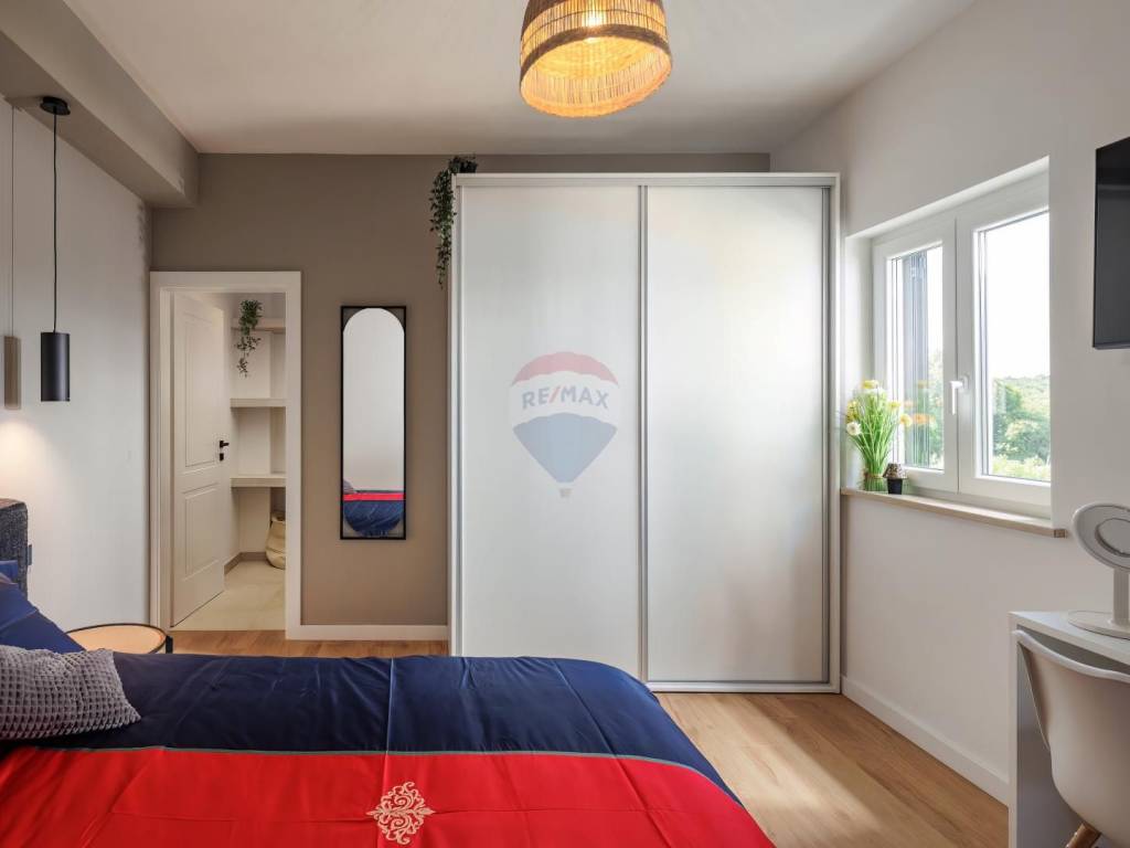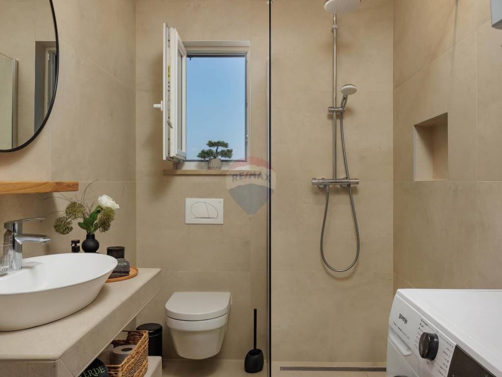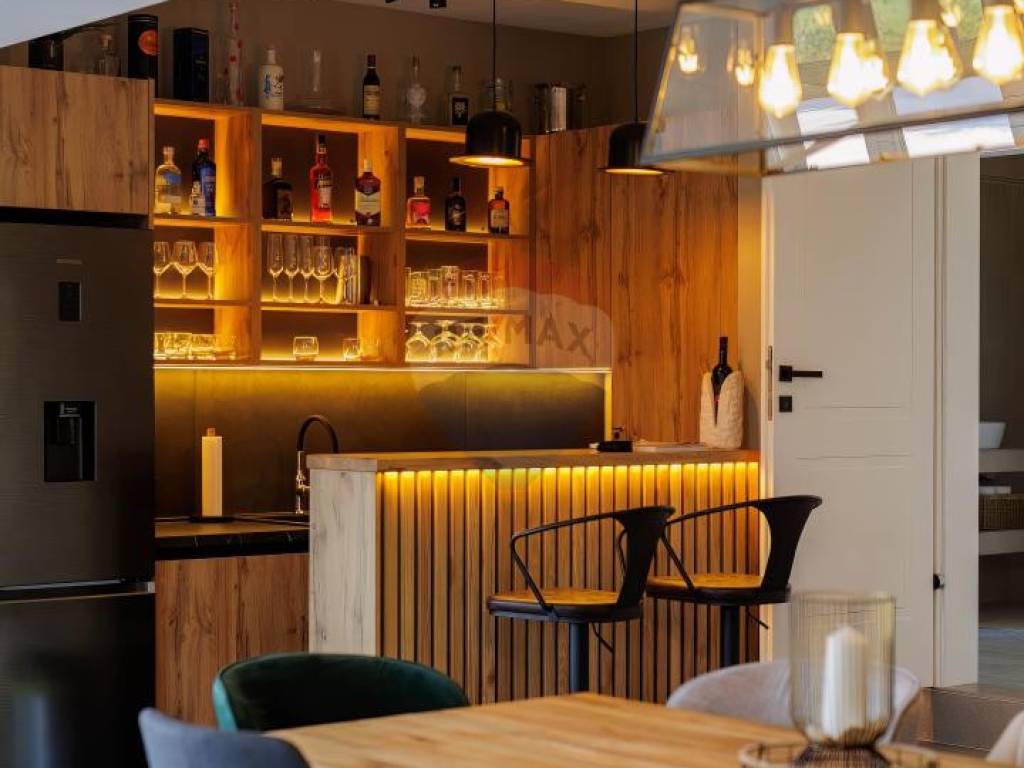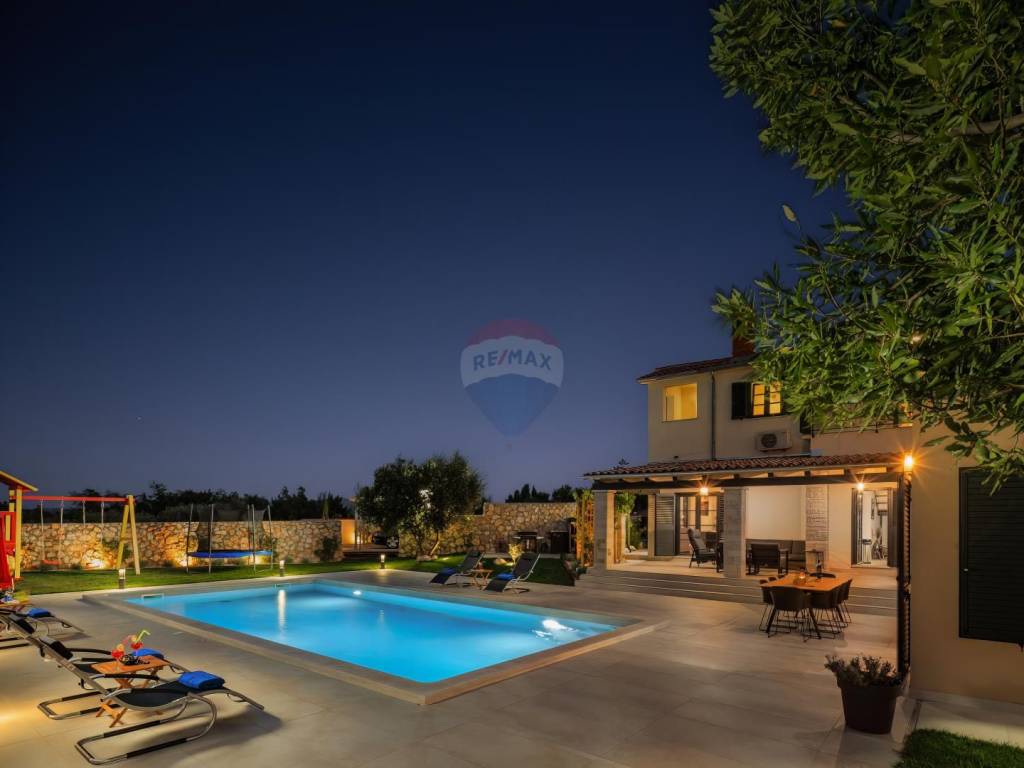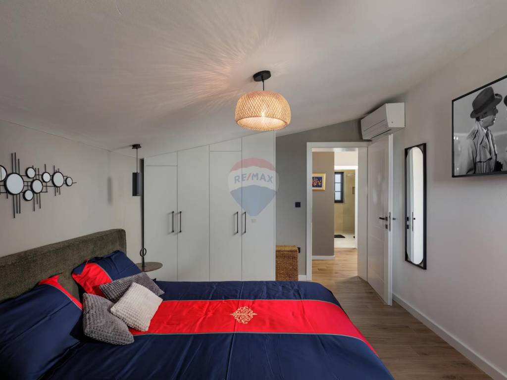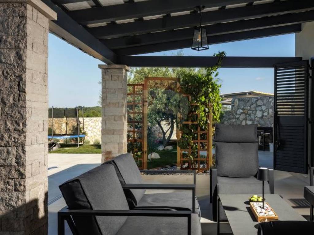 This exclusive estate spans 2,459 m² of landscaped and fenced grounds, ensuring absolute privacy. A spacious 50 m² heated swimming pool with a large sun deck is perfect for soaking up the Mediterranean sun. The Mediterranean garden, enriched with lavender, oleander, rosemary, and centuries-old olive trees, creates a fragrant oasis of peace. An outdoor kitchen built from Kanfanar stone provides an authentic culinary experience.