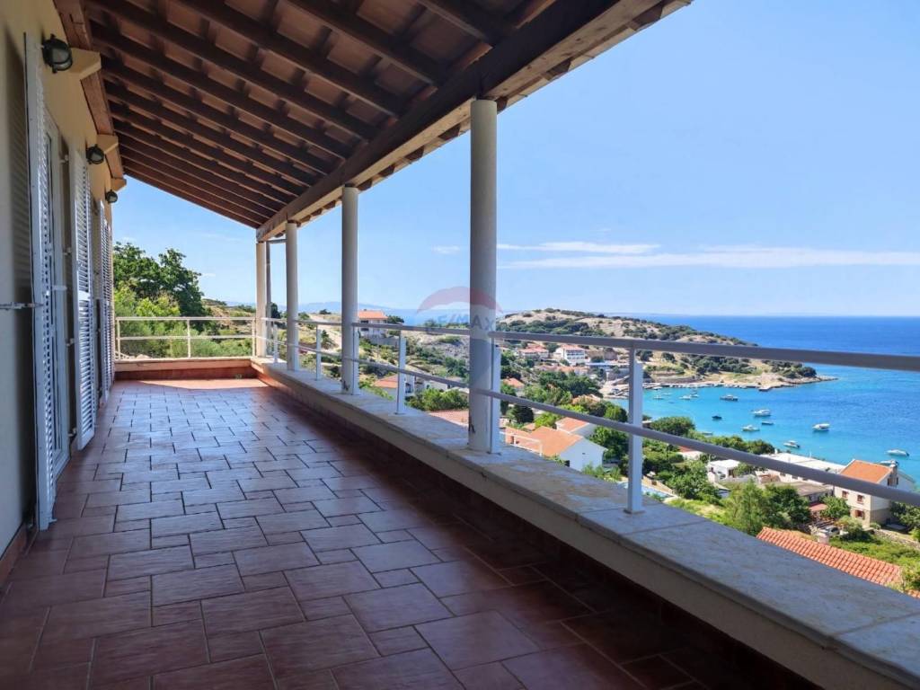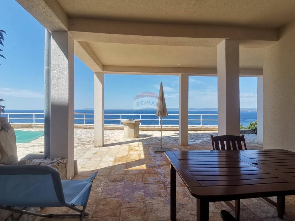 On the plot of 1260 m2, there is this representative villa with a swimming pool and a view of the sea from the pool.