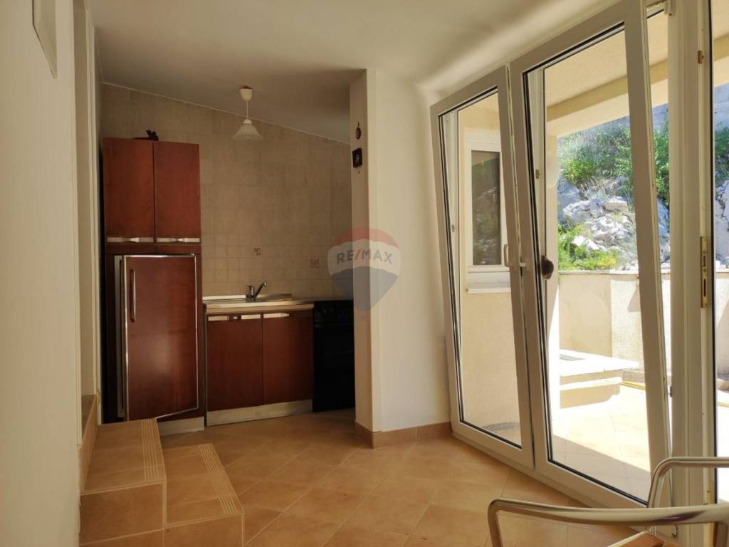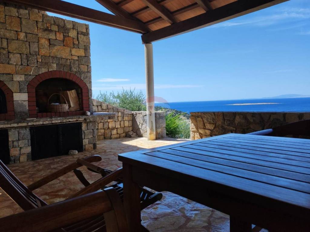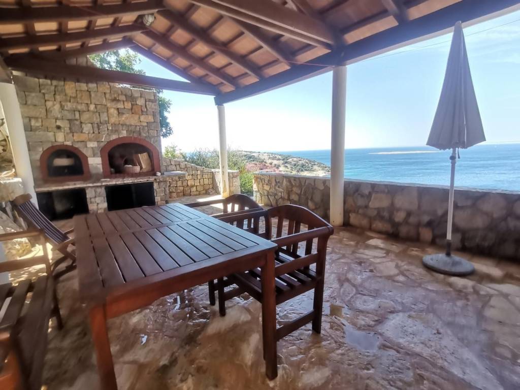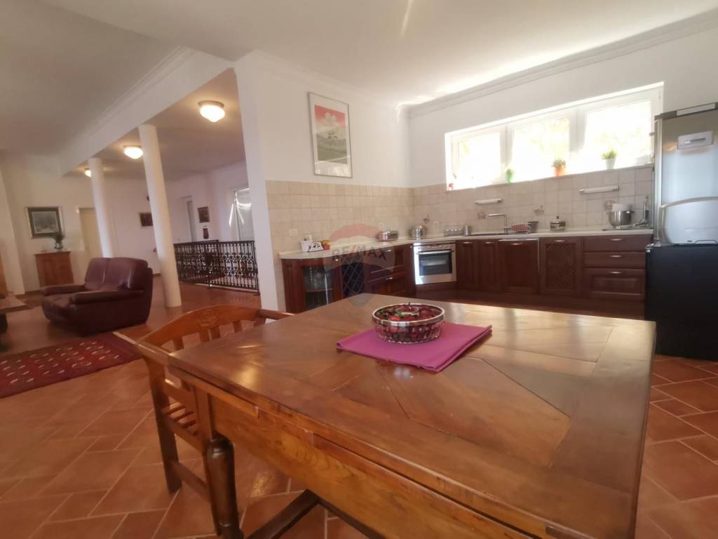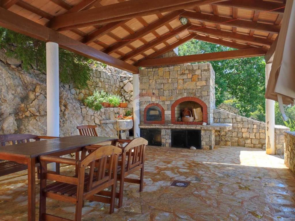 On the first floor, there is a representative living room, kitchen with dining room, bedroom, and bathroom, covered terrace of 48 m2 with a barbecue.