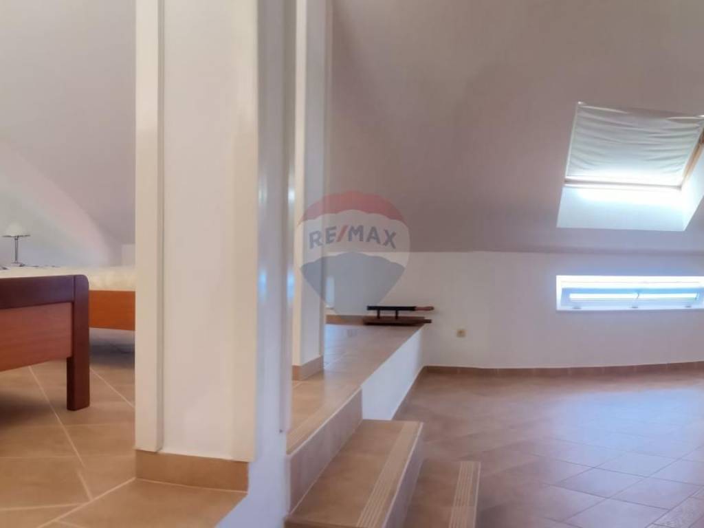 In the high attic, there are two apartments with separate entrances, that is, two bedrooms, two bathrooms, and two kitchens.