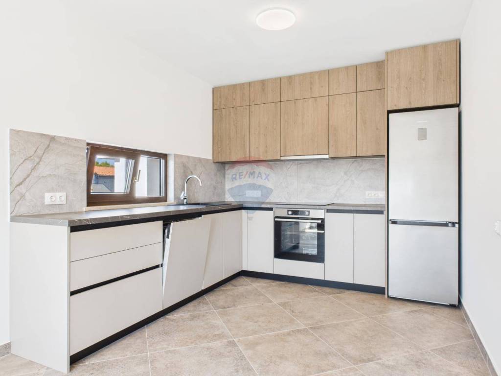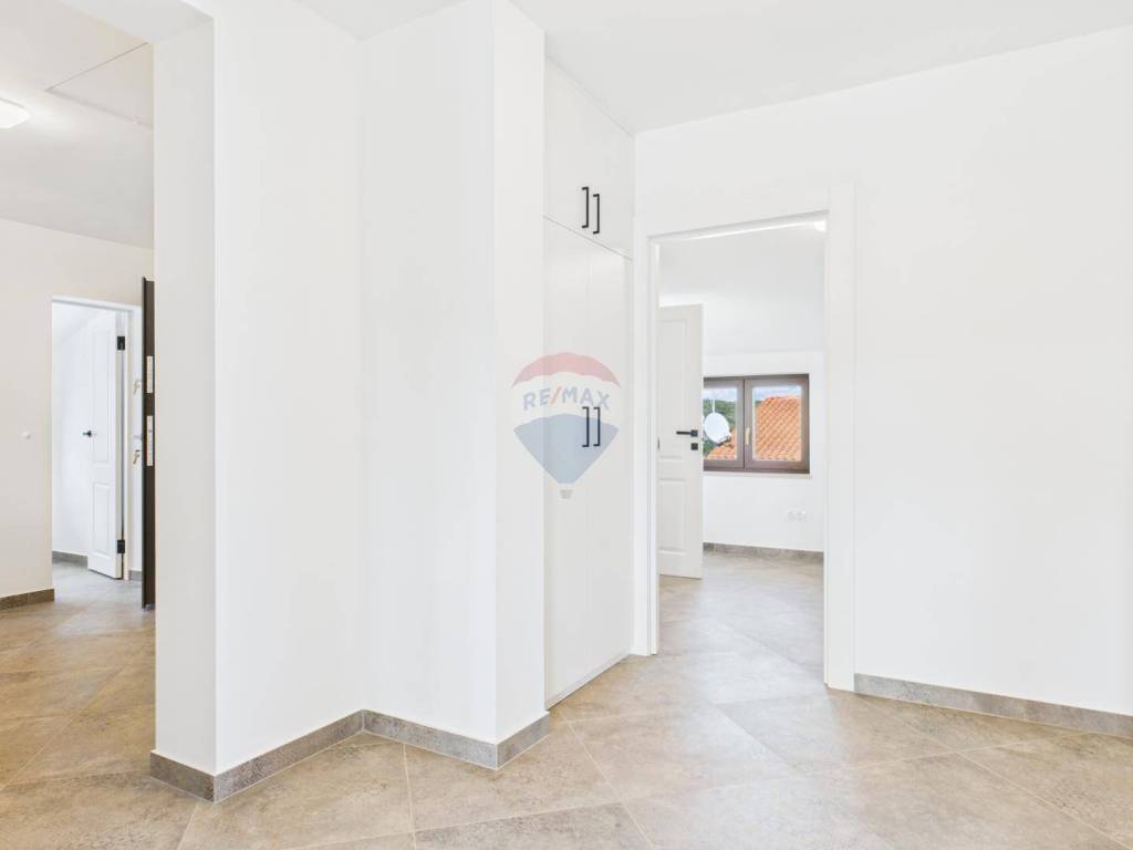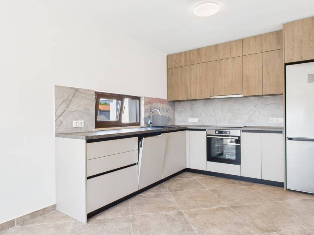 The apartment is located on the top floor of a renovated family house in a quiet residential part of Rovinj. It has a total area of 108 m² and consists of two bedrooms, a spacious living room, a fully equipped kitchen, and two bathrooms. It is being sold "turnkey" – the kitchen and bathrooms are fully fitted, and the rest of the space is move-in ready.