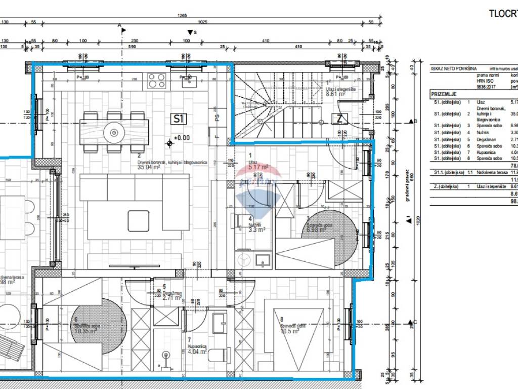 A comfortable staircase leads to the entrance hall, which continues through a corridor into a spacious living room with dining area and kitchen. There is also a large terrace extending from the living area. The three bedrooms provide comfort for a large family of up to five members. The apartment also includes a spacious bathroom and an additional toilet.