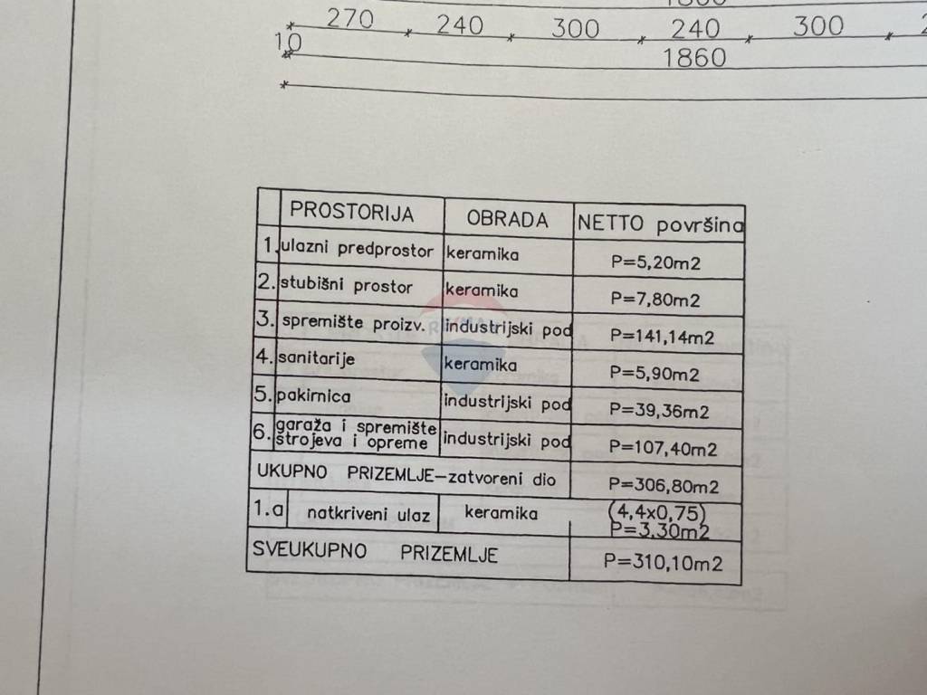Pored stambene kuće tu je projekt za gospodarski objekt (koji mora biti sagrađen ukoliko je i kuća), veličine 310m2 tlocrtno, podrum +prizemlje.