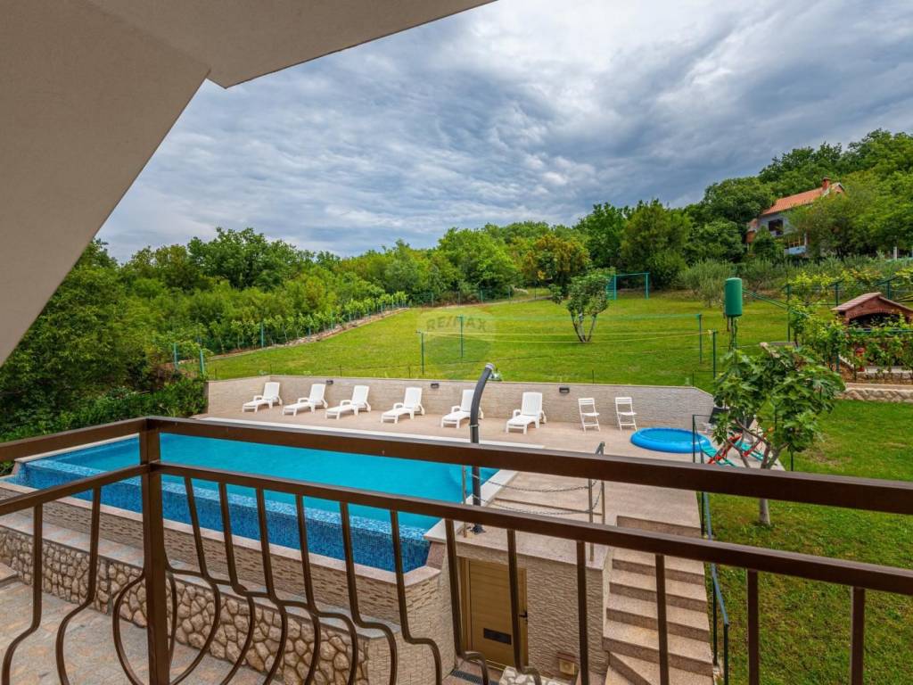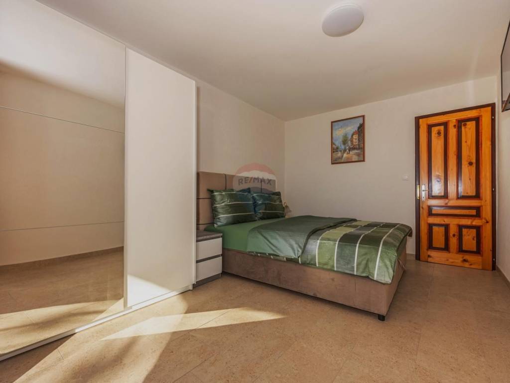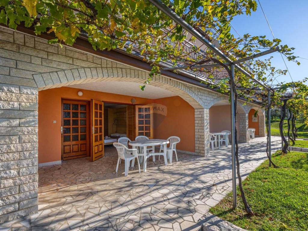 The garden is impeccably decorated and maintained - planted olive trees, a barbecue, a spacious place for socializing and a children's playground make this property perfect for living and relaxing. The swimming pool is located behind the house, providing additional privacy and peace.