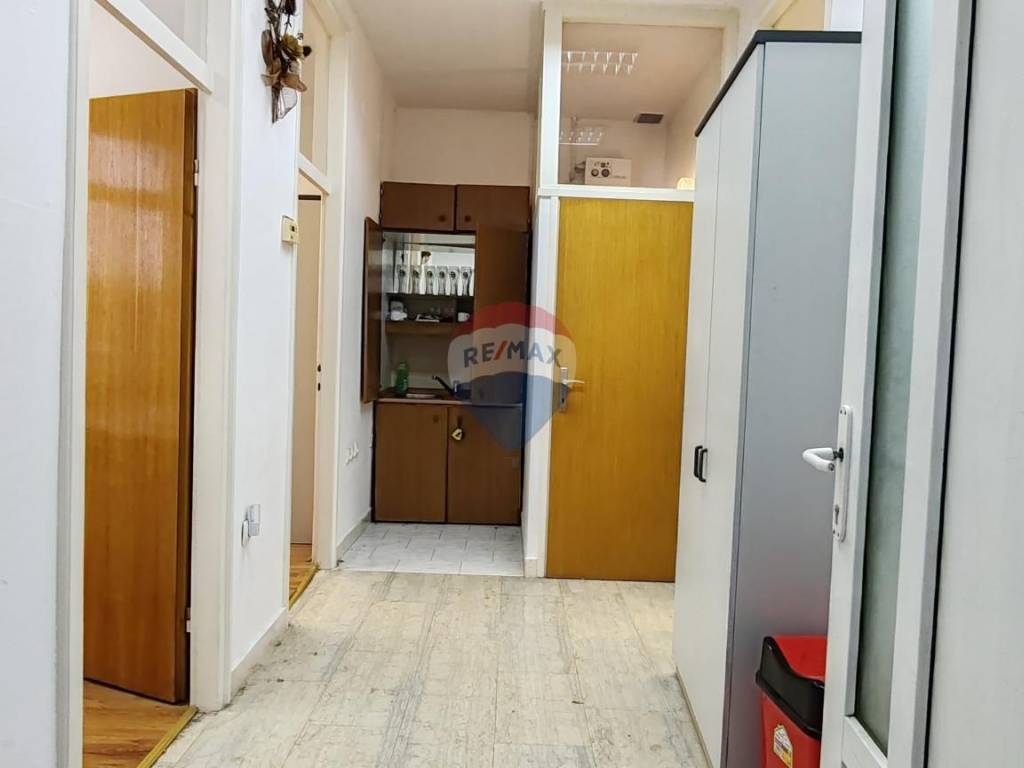 RE/MAX Centar nekretnina - najam kancelarijskog prostora, površine 54 m2. Prostor je funkcionalno podijeljen na tri odvojene prostorije, što omogućava fleksibilno korištenje za različite poslovne potrebe. Uključeni su i toalet, hodnik sa prostorom za kuhinju, kao i pripadajuća terasa. Smješten u prizemlju zgrade, u naravi druga etaža. Lokacija omogućava direktan prilaz s ulice, što je idealno za poslovne subjekte koji žele jednostavan pristup i vidljivost. Za dodatne potrebe, postoji mogućnost najma dodatnog skladišnog prostora od 28 m2, koji se nalazi u neposrednoj blizini. Ovaj prostor je savršen za firme koje traže funkcionalne kancelarije u dobroj lokaciji, sa mogućnošću proširenja skladišnog prostora.