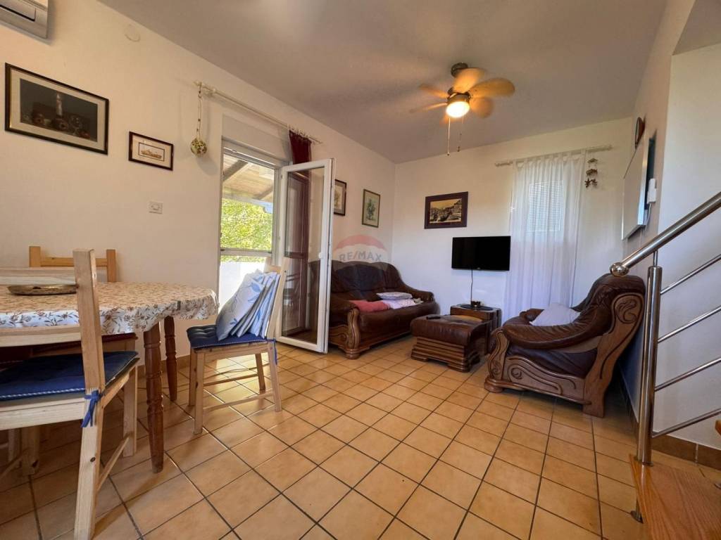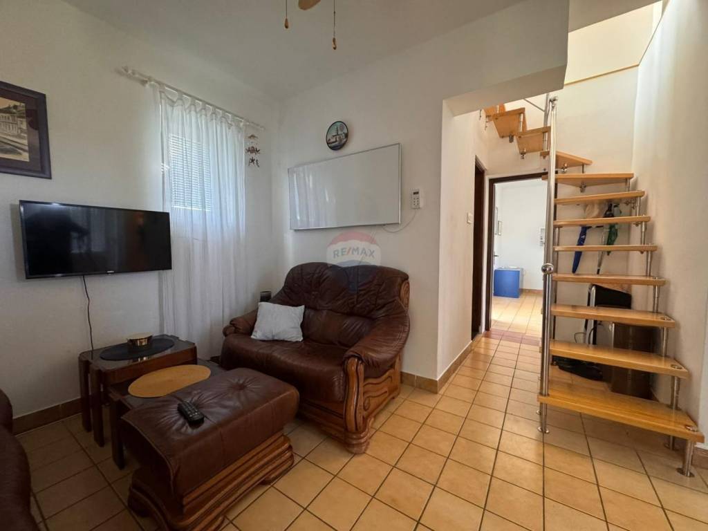 For sale is a two-level apartment with a total area of 126 m², situated in an excellent location in a quiet setting, close to both the town center and the sea. The apartment consists of a main floor and an attic. On the main floor, with an area of 69 m², there is a living room, a bedroom, a kitchen, a bathroom, a storage room, a terrace, and a loggia. The attic, with a total area of 57 m², is arranged as either a living or sleeping area with an additional room, offering flexibility to suit the needs of the future owner.