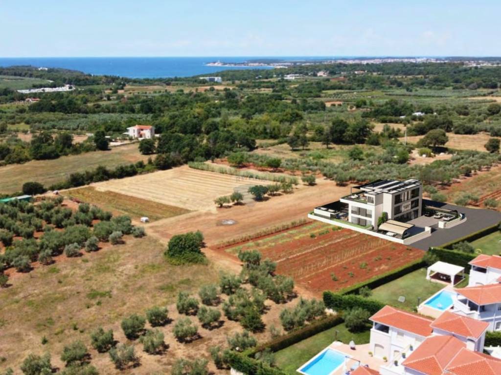 In a prime location, in Vabriga, just 800m from the sea and overlooking the sea, there is this luxurious apartment with a garden and a swimming pool. The apartment is located in a building with only four