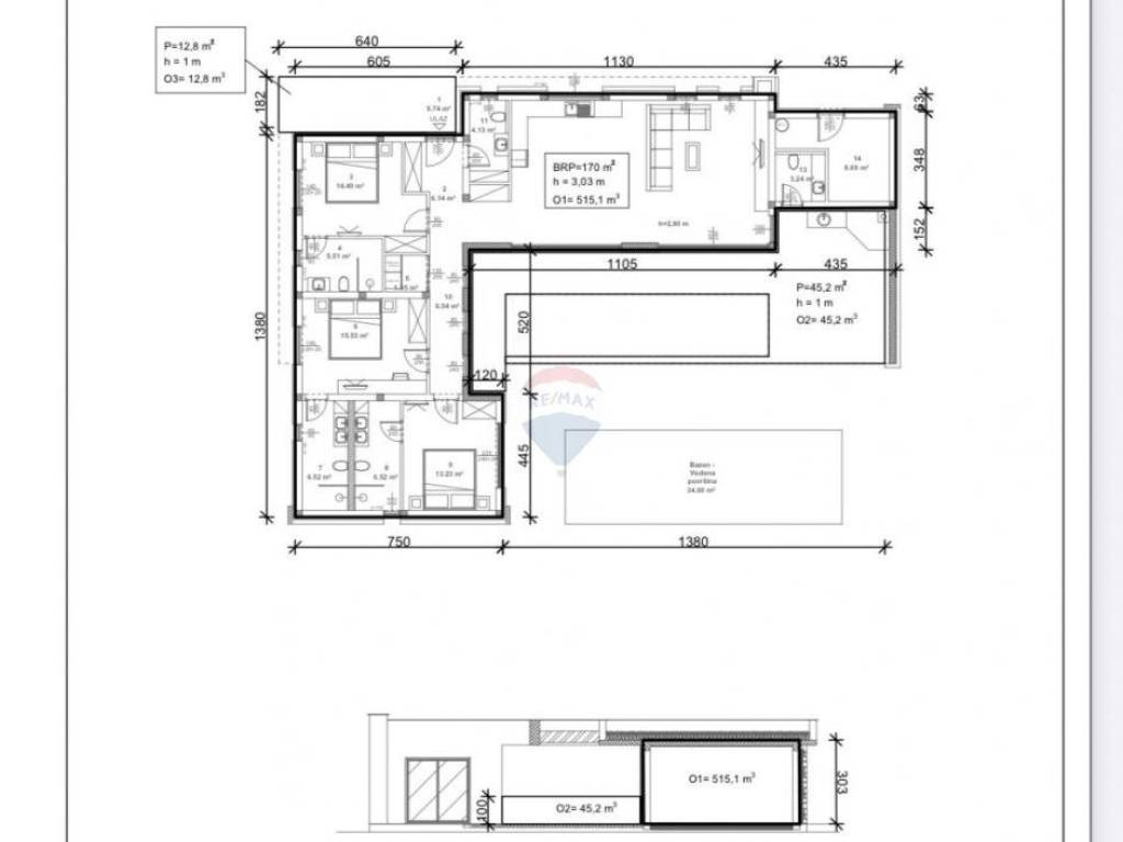 House area: 170 m² Land plot: 792 m² Pool: 34 m²