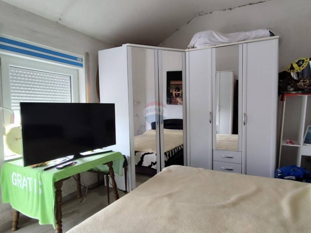 On the ground floor there is a spacious stone tavern with a covered entrance. On the 1st floor there is a three-bedroom apartment with a balcony, while on the 2nd floor there is a two-bedroom apartment with a living room, bathroom, south-facing balcony and a large terrace on the north side.