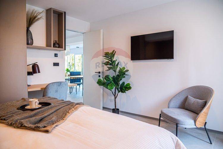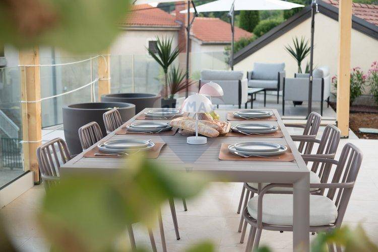 In the garden there is a heated swimming pool 5.3m x 3.2m (exclusively for this apartment), a garden, a summer kitchen and a space for socializing.