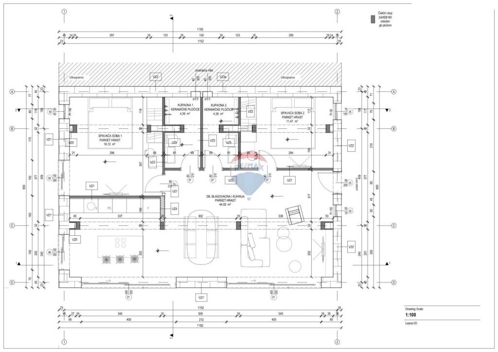 The apartment in question has a separate entrance, net living area of 81.29 m2, and consists of: 2 bedrooms, living room with kitchen and dining room and 2 bathrooms.