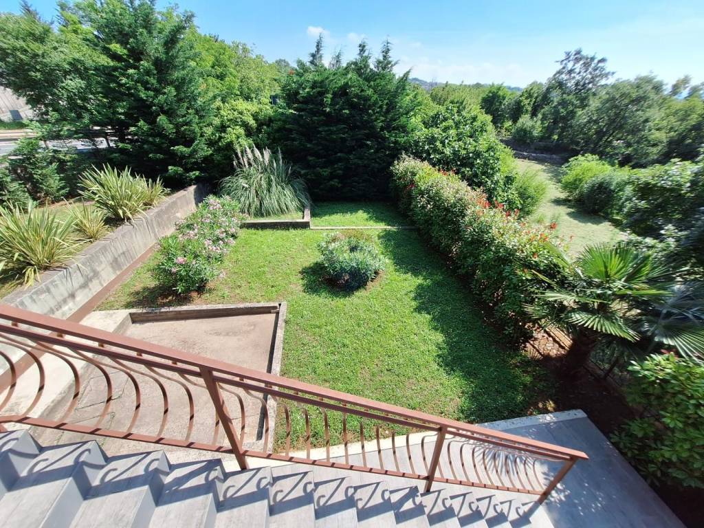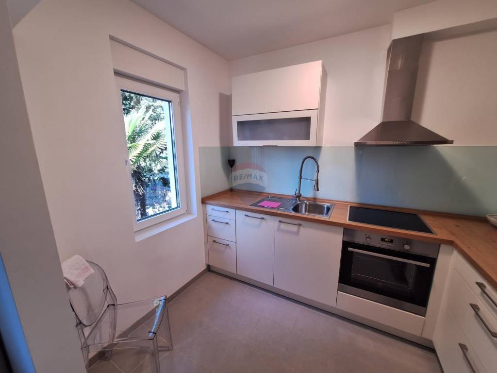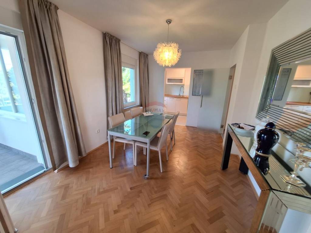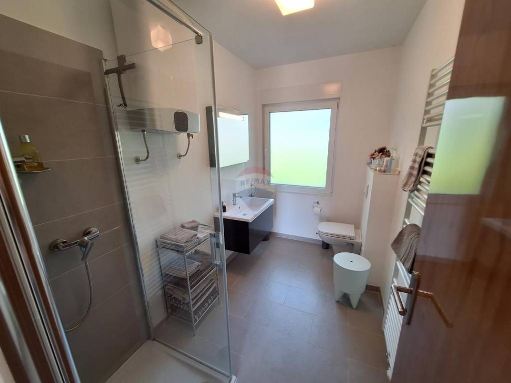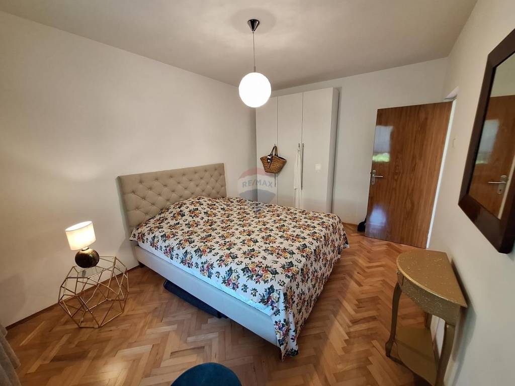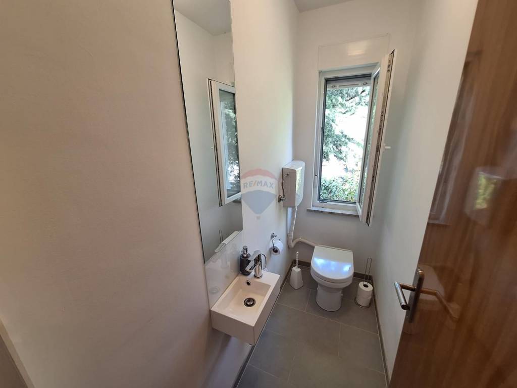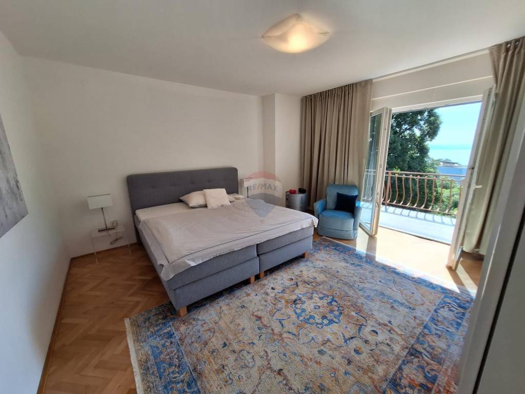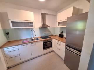 The apartment is connected by internal stairs to the 75 m2 apartment in the basement, which has a spacious living room with access to the terrace and garden, there is another bedroom, bathroom, hallway and entrance hall. On this floor there is also a garage, a laundry room, a boiler room and two other rooms for various purposes. Heating is central with heating oil. The owners plan to build a new facade. The house is located near the center of Matulji, in Branka Laginje Street.