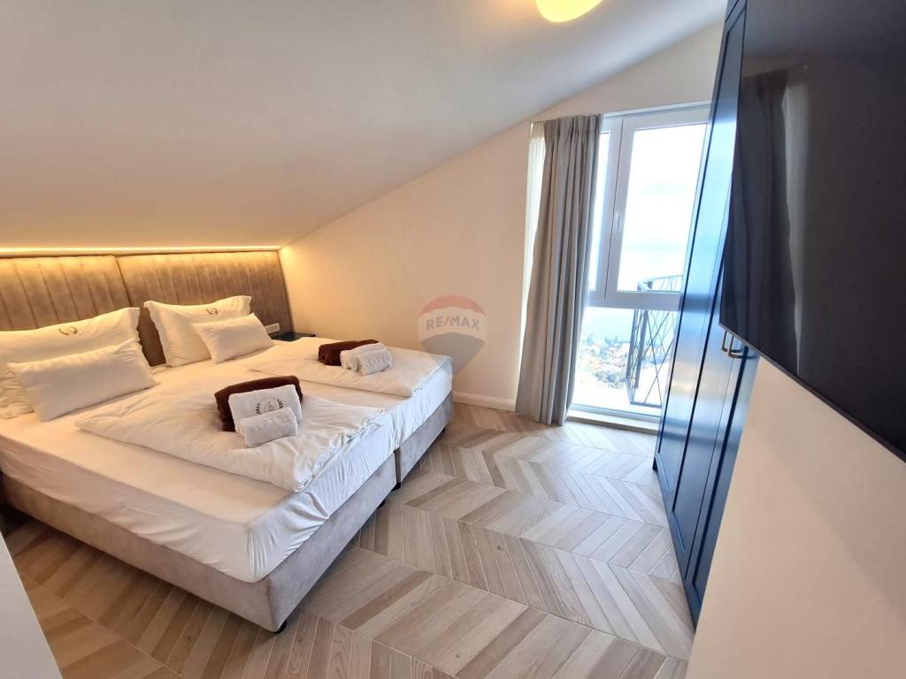 Lovran - For sale is a fully furnished and modernly equipped, beautiful two-bedroom apartment with an open view of the Kvarner Bay. The apartment consists of a hallway with storage, living room, kitchen with dining room, toilet and two bedrooms, each with its own bathroom. The bedroom balcony offers a panoramic view of the entire Kvarner Bay. The apartment has a swimming pool, a sunbathing area and an outdoor terrace with a barbecue.