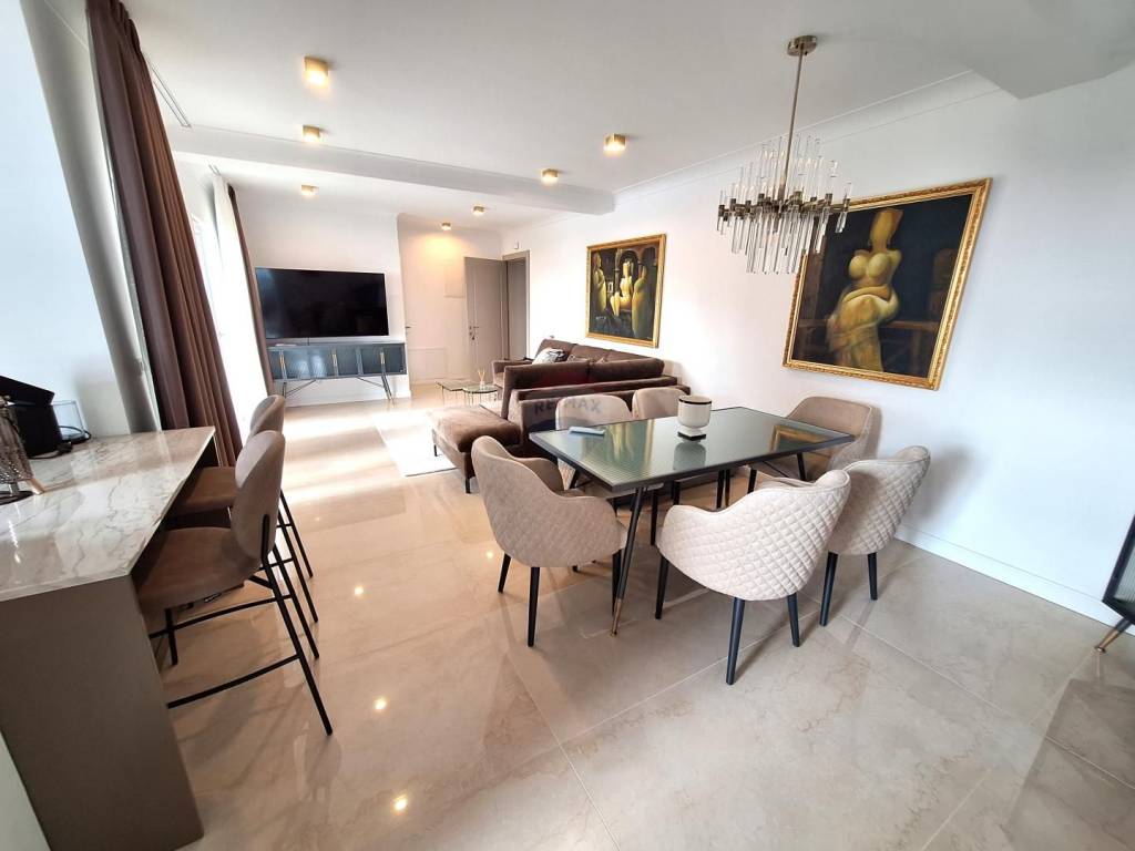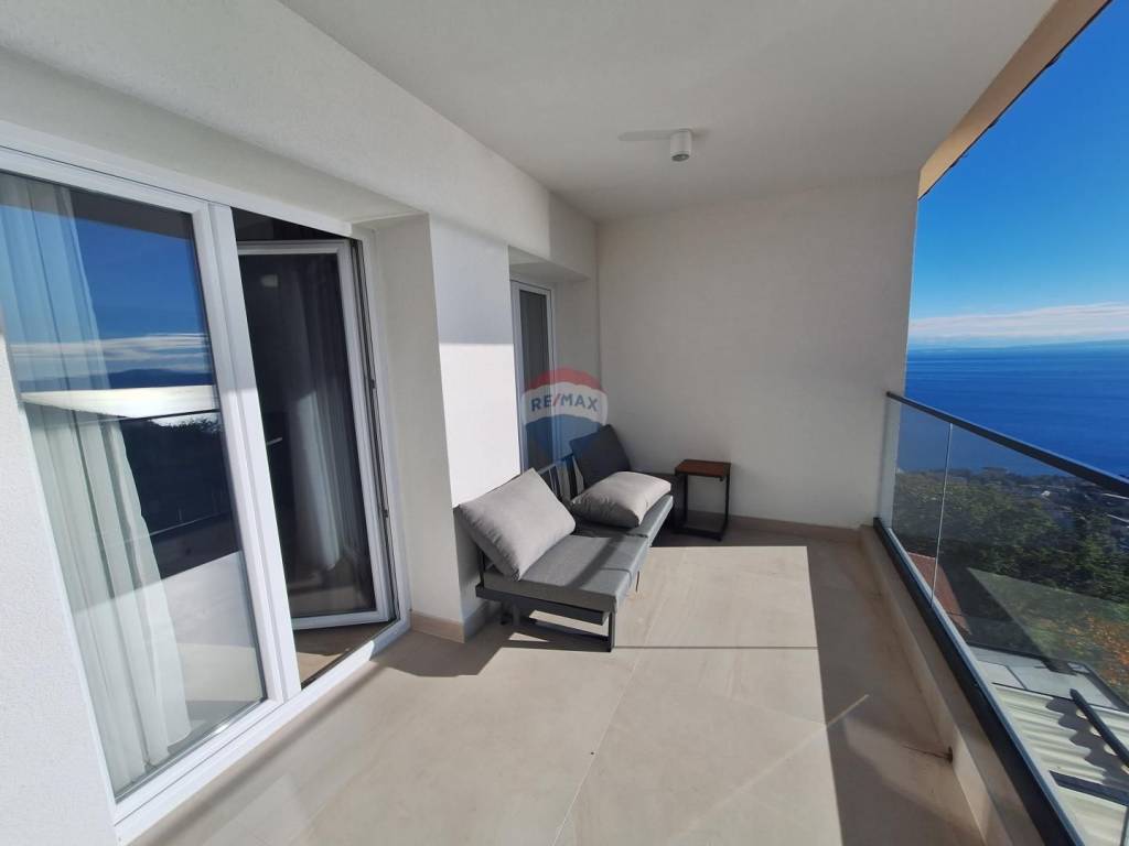 Lovran - For sale is a modernly furnished and equipped apartment on the ground floor of a building. It consists of a living room with access to a large covered terrace, kitchen, dining room, toilet and 2 bedrooms with bathrooms. One room also has access to a terrace with a beautiful view of the bay. The apartment also has a swimming pool, a sunbathing area and an outdoor covered terrace with a barbecue.