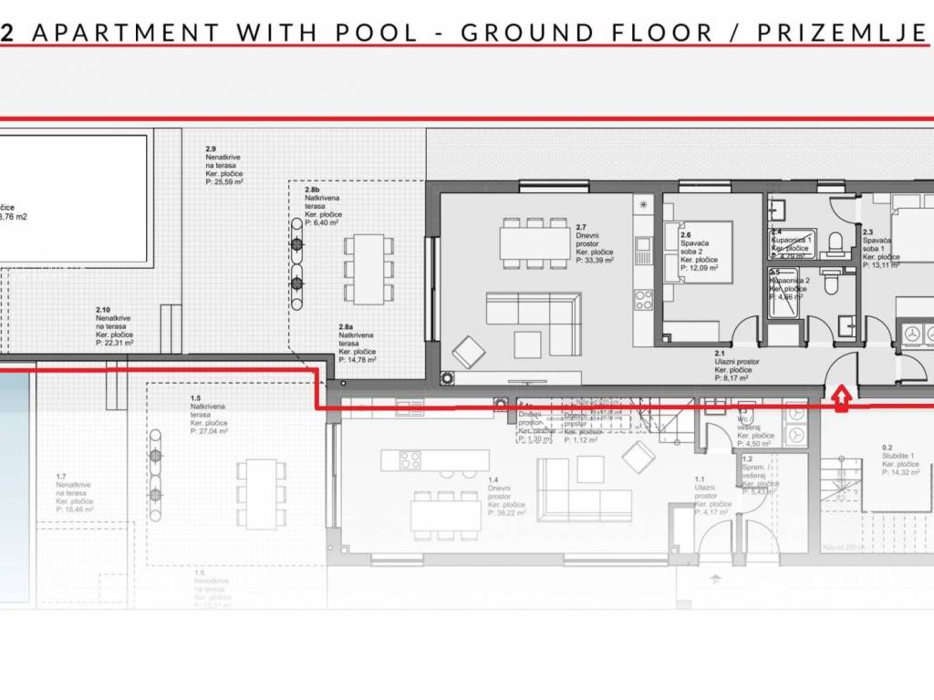 Vodice, Apartment for sale with garden and swimming pool, new building, ground floor, €448,232.