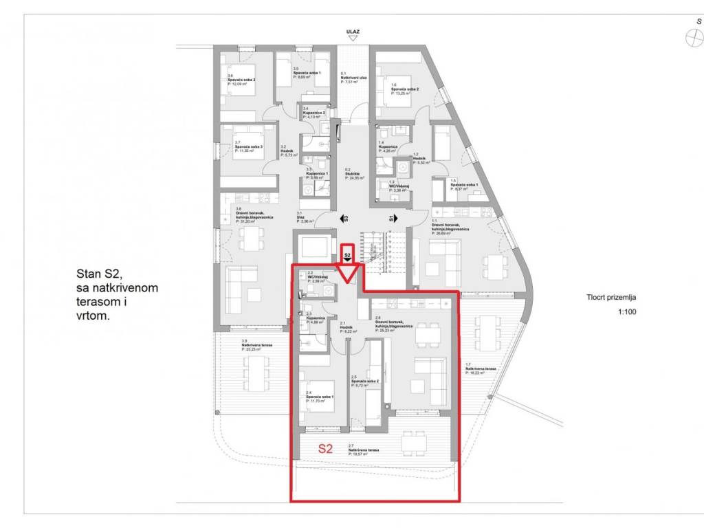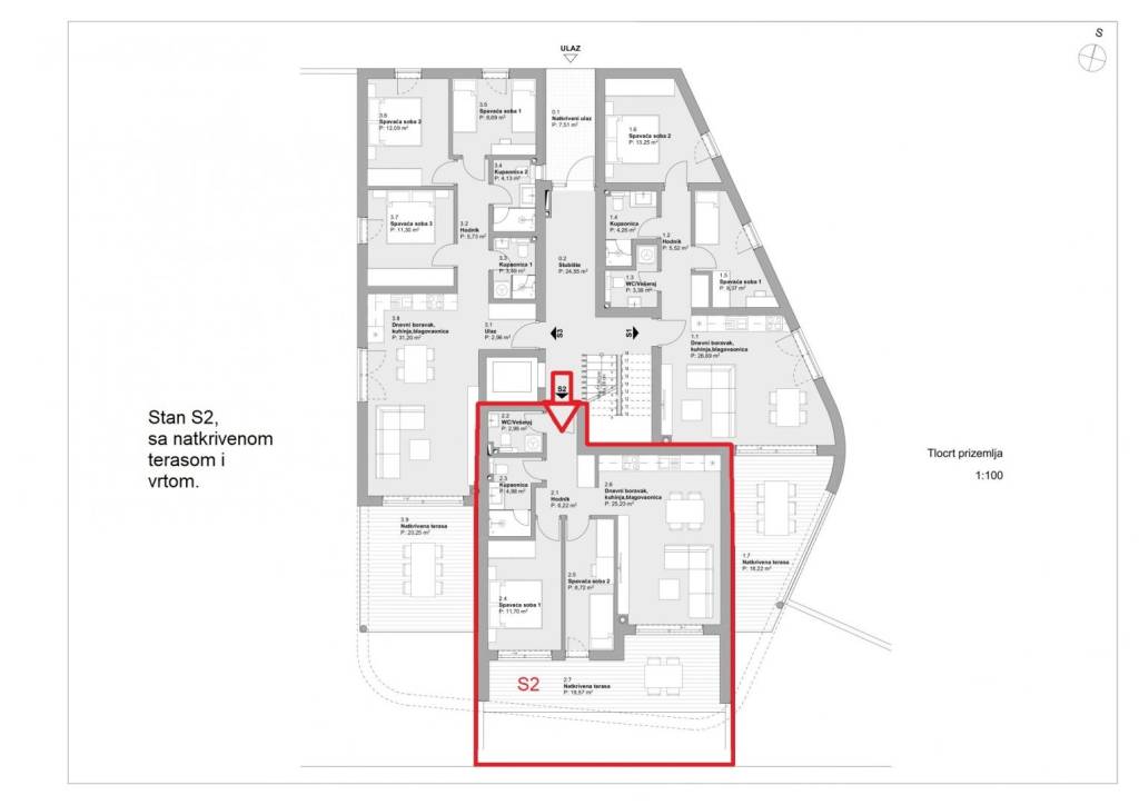 For sale is an apartment marked S2, located on the ground floor of a luxurious new building.