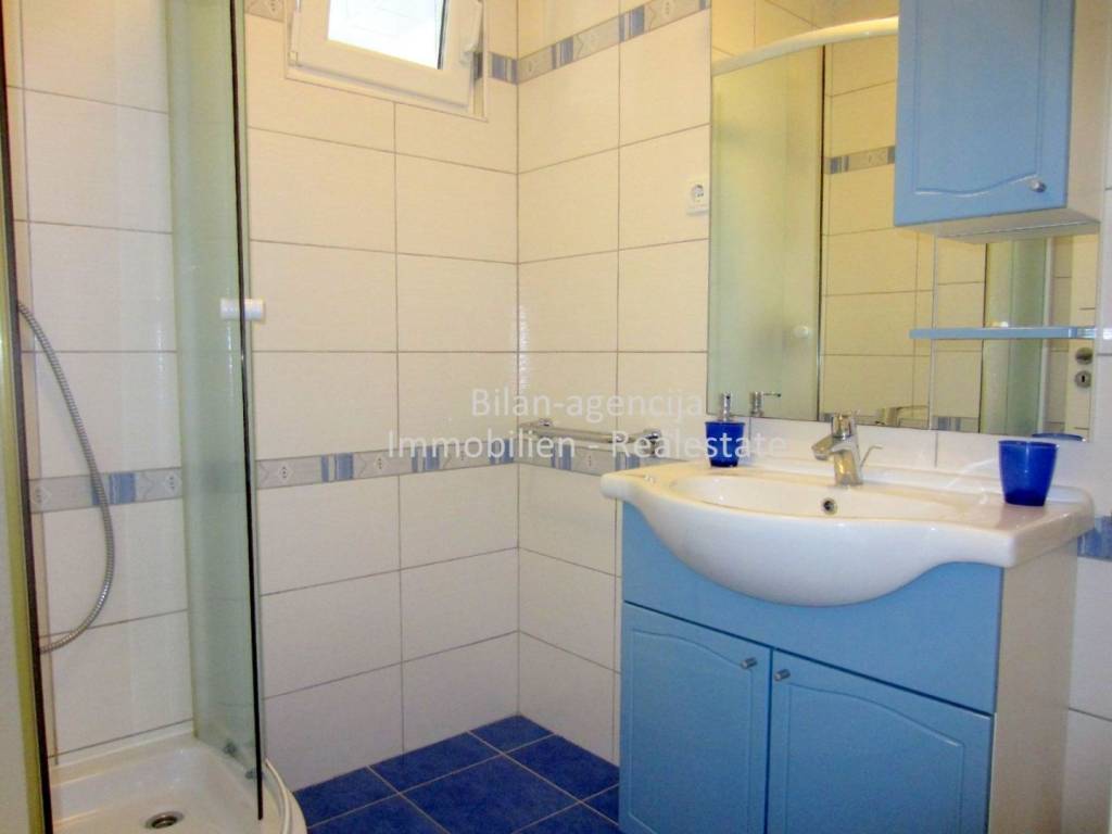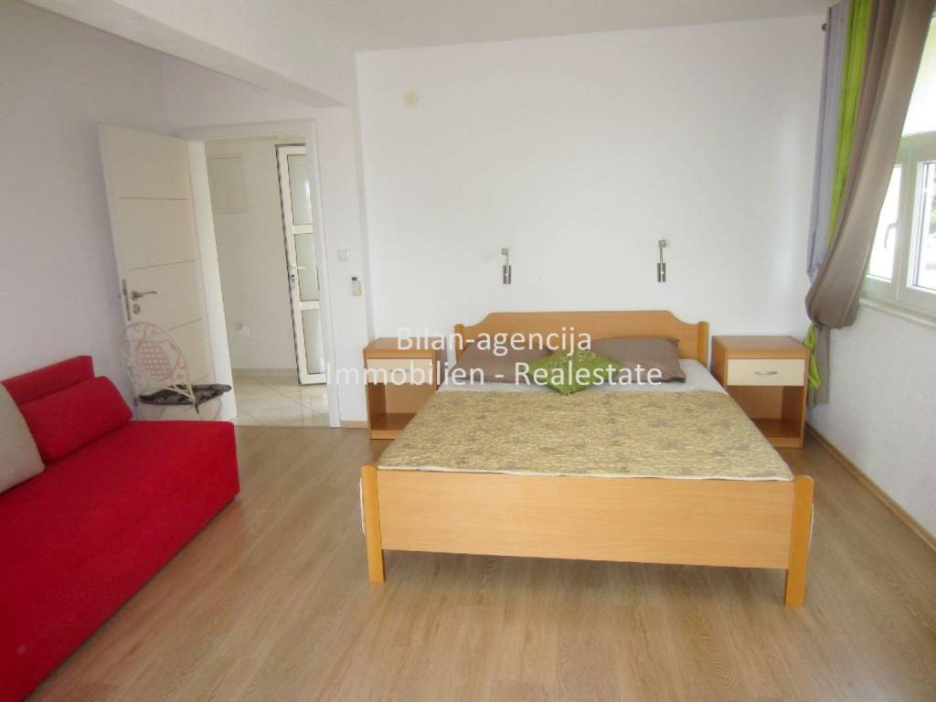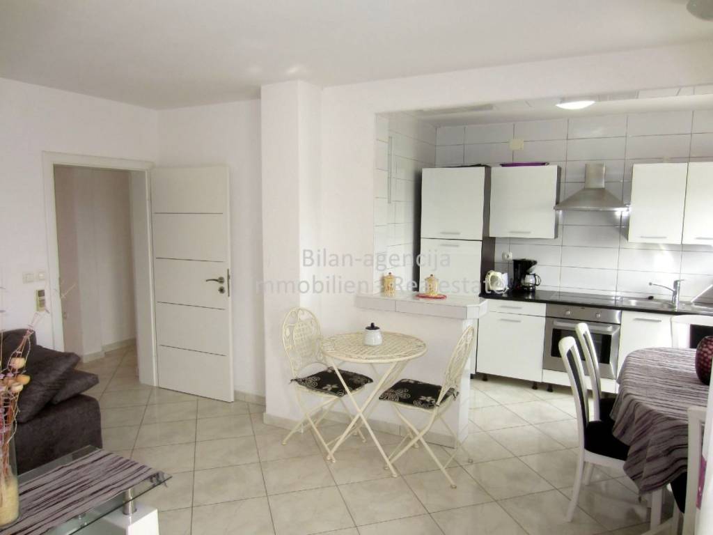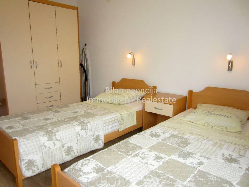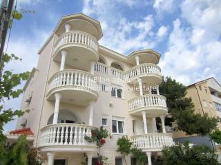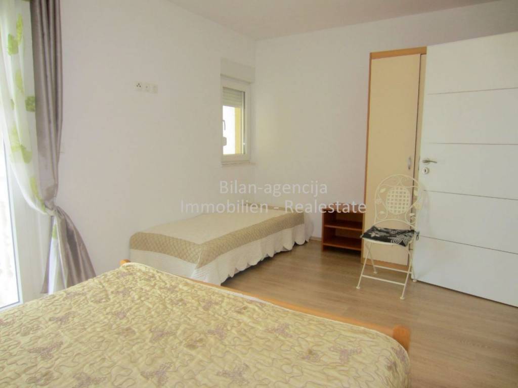 The apartment extends through the entire first floor, and it is sold well furnished. It consists of an entrance hall, 2 bathrooms, 3 bedrooms, 1 toilet, spacious, fully equipped kitchen with dining room and living room open spice.The rooms are bright, airy, with an excellent layout, and the loggia and balcony next to the two bedrooms, and the spacious balcony next to the living room area, south orientation, give a special charm. Combinations in the use of living space are possible. The apartment has one parking space in the fenced yard of the house. There is also a designated place to sit and the possibility of using the barbecue in the common yard.