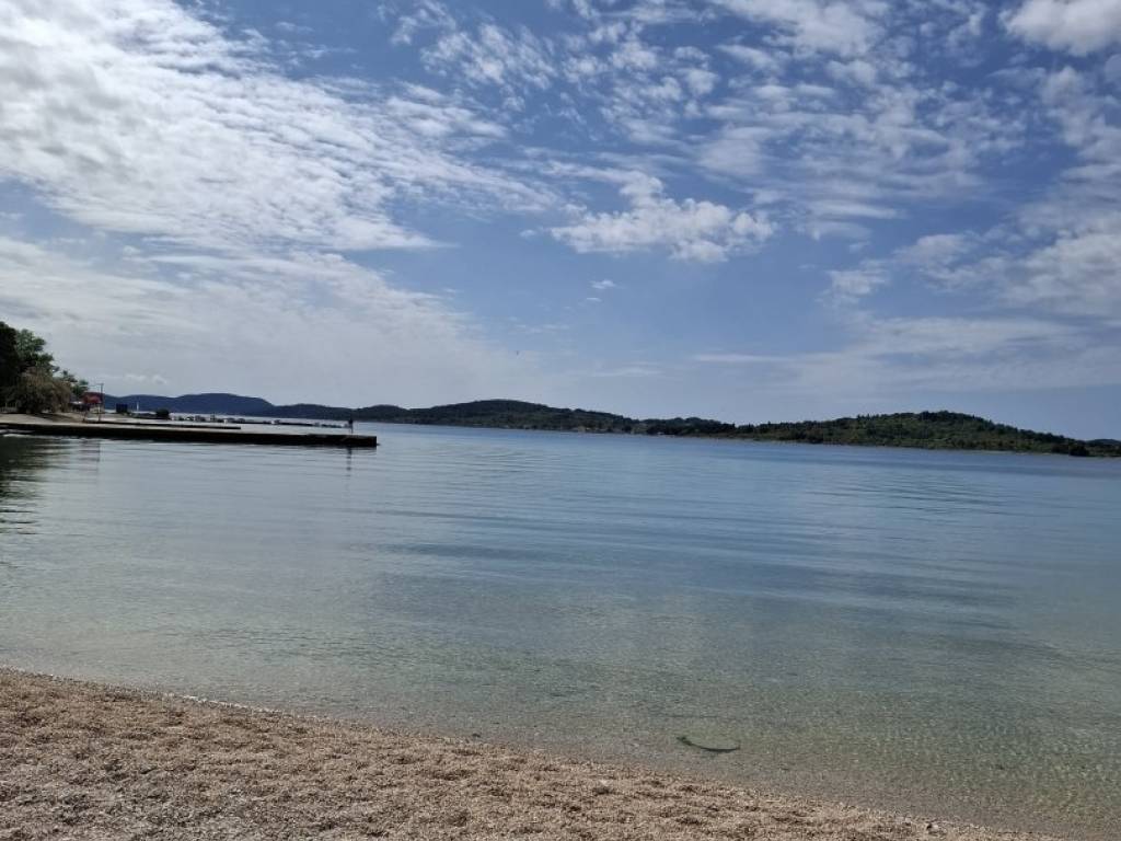 Vodice, apartment on the ground floor, with a spacious garden/courtyard and two parking spaces. 520 m as the crow flies to Imperial Beach.