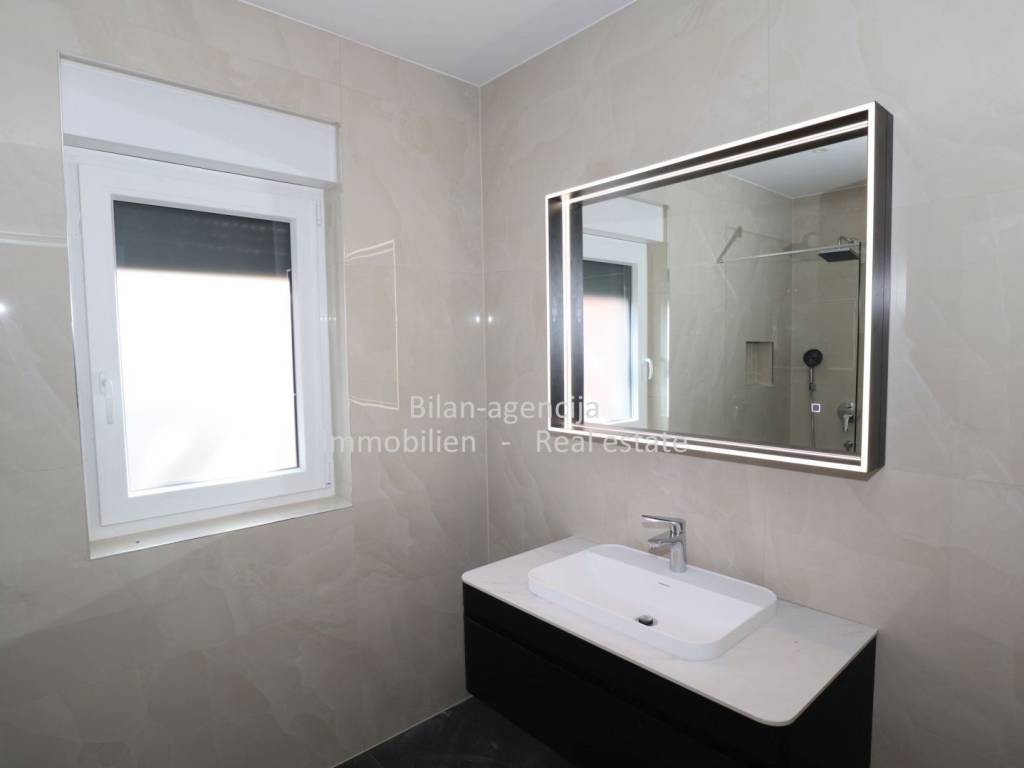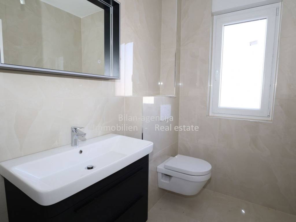 The apartment is equipped with underfloor heating, electric blinds and insect protection, quality ceramics and bathroom equipment. Inverter air conditioners are installed in the bedrooms and kitchen-dining-living room.