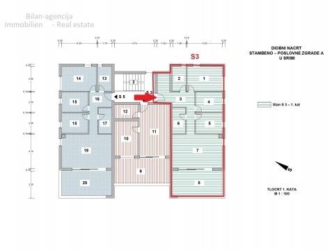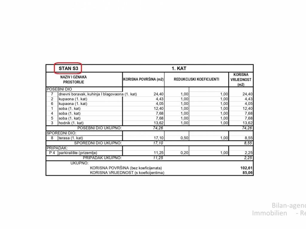 The apartment is located on the first floor of a building with a ground floor and two floors. It consists of 3 bedrooms, 2 bathrooms, kitchen-dining room-living room, hallway and terrace. The apartment has a parking space. The total and actual area of all the above (apartment, terrace, parking) is 102.61 m2.