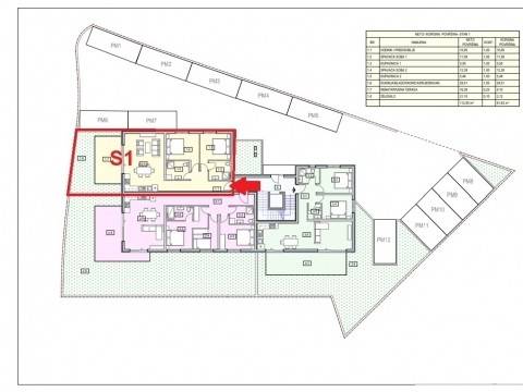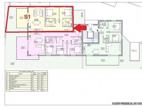 For sale is an apartment marked TS-S1, located on the ground floor of a building consisting of a ground floor and three floors, a total of 8 apartments.