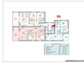 Apartment marked TS-S6 for sale, located on the first floor of a building consisting of a ground floor and three floors, a total of 8 apartments.