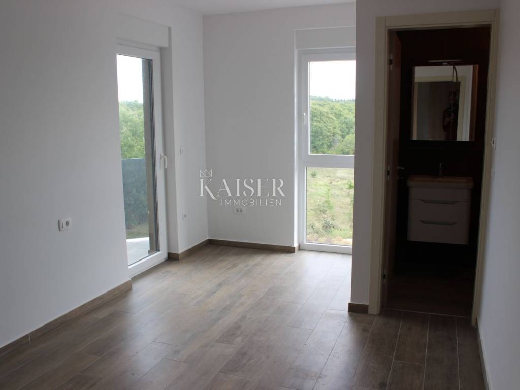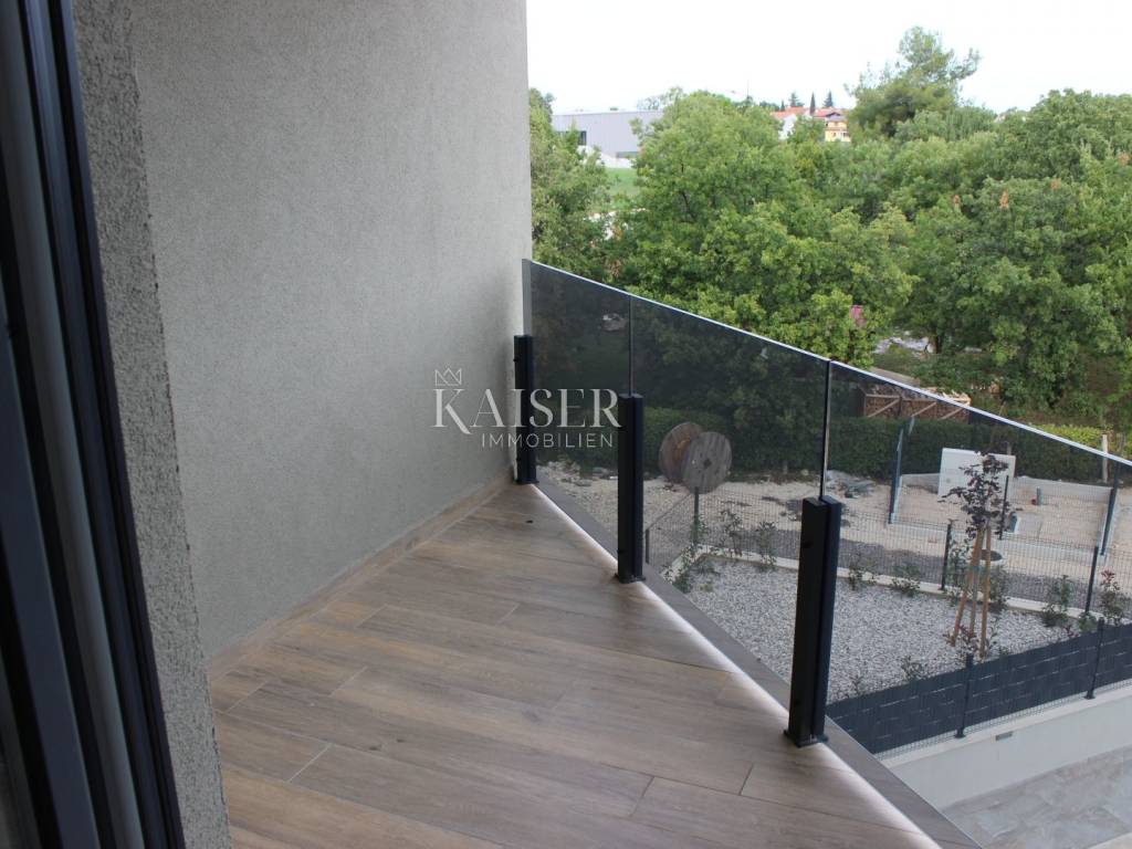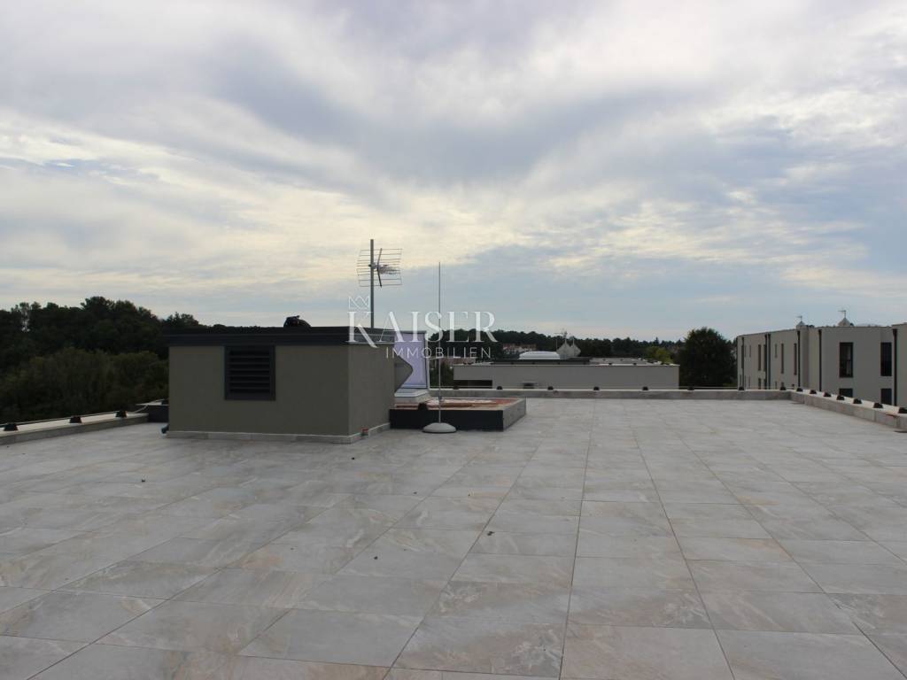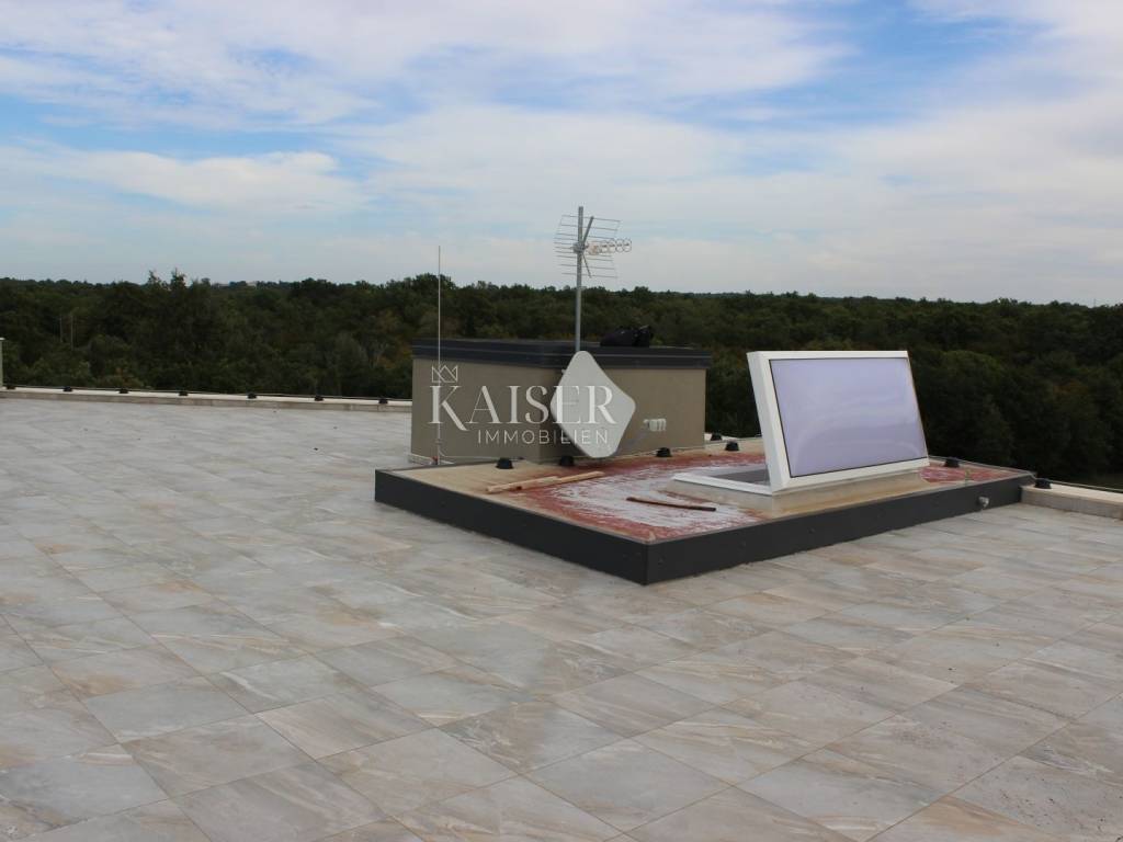 Poreč apartment 177m2 penthouse Spacious apartment of 132m2 in a new building in a quiet location. The apartment consists of: 4 rooms, one of which has its own bathroom and loggia, a separate room for laundry, another bathroom and a large living room connected to the kitchen with access to the terrace. As part of the property, there is also a private roof terrace of 132 m2 with a jacuzzi and an area for enjoyment. The building has a total of 4 apartments, its own parking space in the garage located on the ground floor of the building and another outdoor parking space. The building has an elevator! The apartment has underfloor heating, and it also has air conditioning.