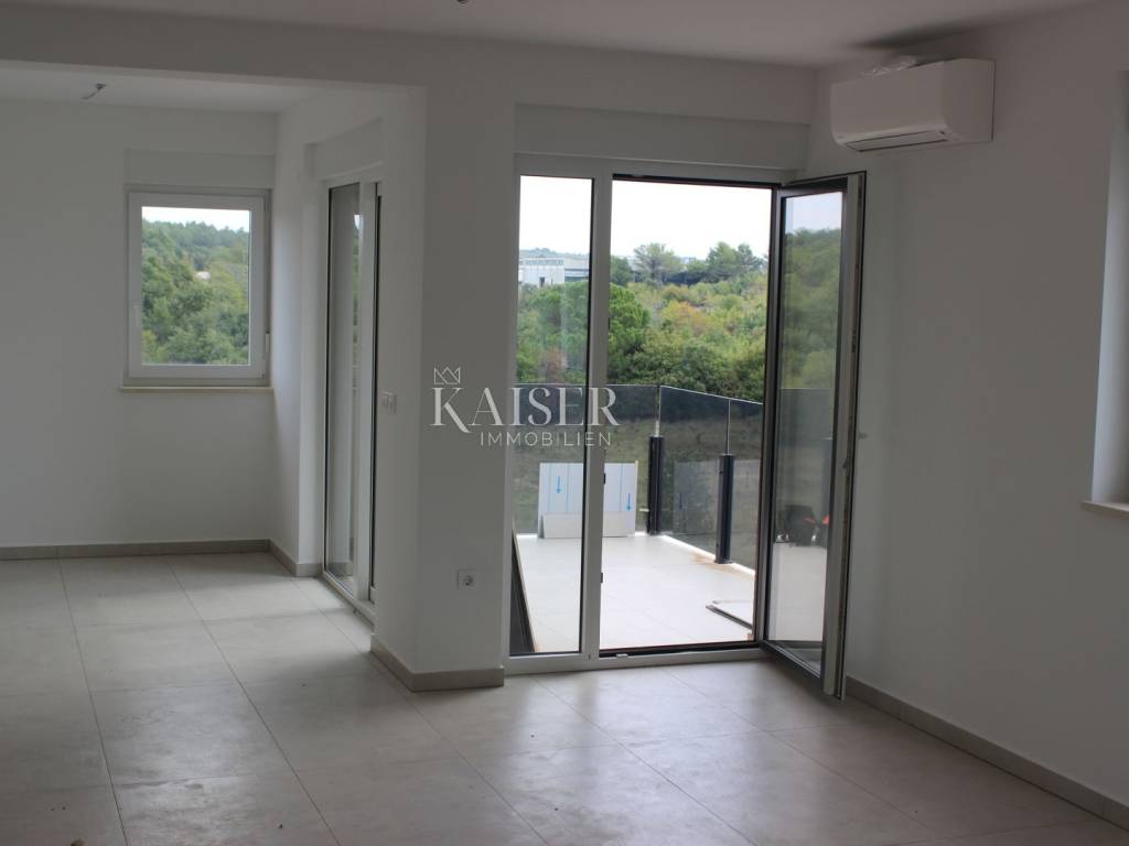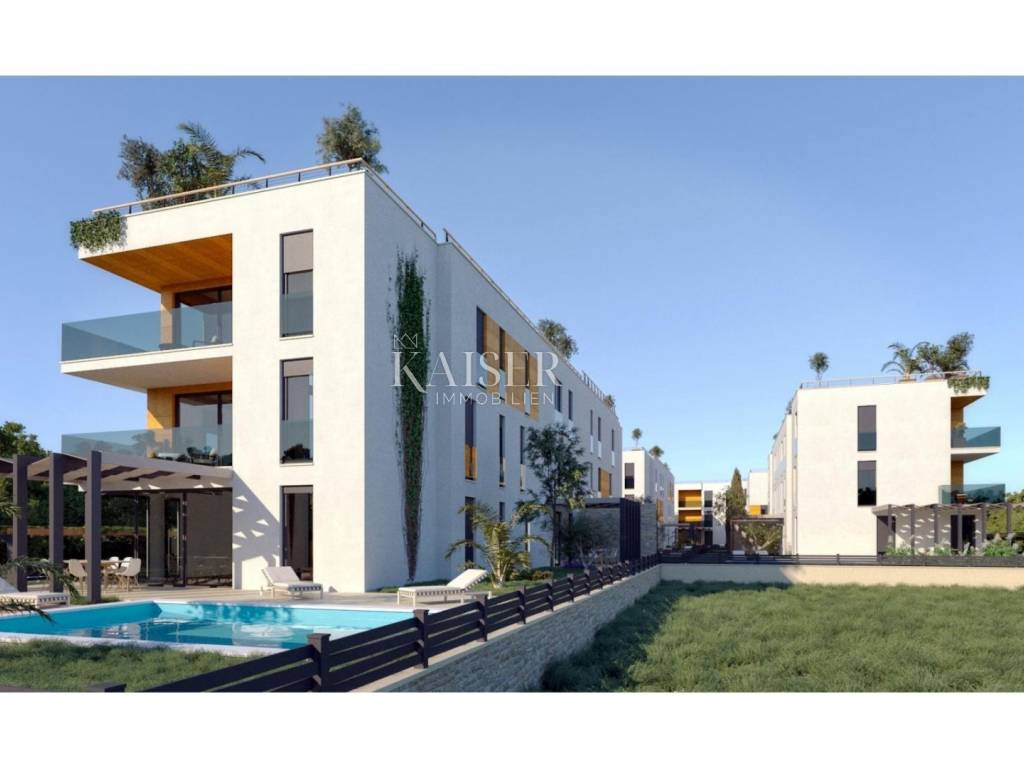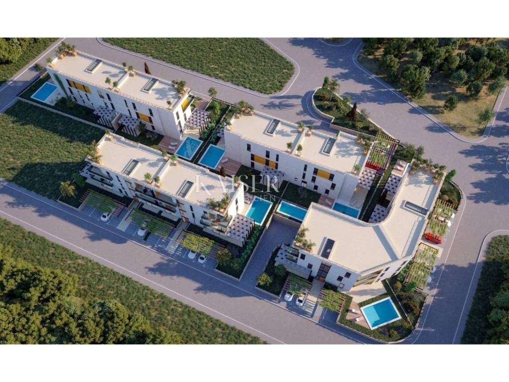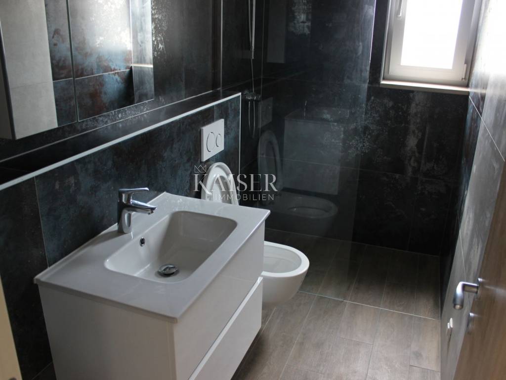 Poreč apartment 177m2 penthouse Spacious apartment of 132m2 in a new building in a quiet location. The apartment consists of: 4 rooms, one of which has its own bathroom and loggia, a separate room for laundry, another bathroom and a large living room connected to the kitchen with access to the terrace. As part of the property, there is also a private roof terrace of 132 m2 with a jacuzzi and an area for enjoyment. The building has a total of 4 apartments, its own parking space in the garage located on the ground floor of the building and another outdoor parking space. The building has an elevator! The apartment has underfloor heating, and it also has air conditioning.