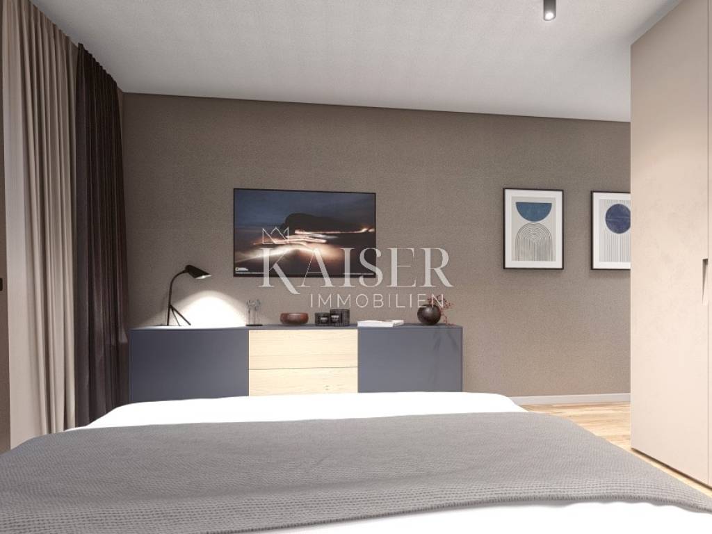 Kaiser Immobilien offers this exclusive penthouse in Poreč. The apartment will consist of a large living room, kitchen and dining room. It will have 5 bedrooms and 5 bathrooms. The quality of this apartment is its location itself; only 500 meters from the sea, so you can walk to the beach. The distance to Freedom Square in the city center is 900m. The quality of construction and availability of content, commercial, cultural, educational and recreational facilities necessary for a quality family life are elements that will decorate the apartments in this urban villa with only 5 apartments. It will have its own measurement of water, electricity and gas consumption. The predicted peak power for is 11.5 kw. Also independent gas underfloor heating as well as hot water preparation via a gas boiler. Each room will have room thermostats to regulate the temperature in the room. A wood-burning fireplace will be installed in the apartment. Air conditioners will be installed in every room as well as in the living room. A total of 6 indoor units. The floors in the apartment are provided with ceramic tiles in the kitchen, bathrooms and hallway. Oak parquet is provided in the living room and bedrooms. The customer can choose the ceramic tiles of his choice. The price of the apartment includes the purchase price of the tiles in the amount of HRK 300/m2. Likewise, the customer has the option to choose the model and color of the room door, the color of the interior walls; In a way, the buyer becomes his own architect and gets the apartment he really wants. Each apartment will have a telephone connection. We also installed pipes for the possibility of installing optical cables so that later there is no saving in apartments. The building will have a Khone elevator. The staircase will be covered with stone, as will the inner benches. The entrance door to the apartment will be anti-burglary. The parking lot will be paved. An intercom with a video camera will be installed at the door for the pedestrian entrance to the building.