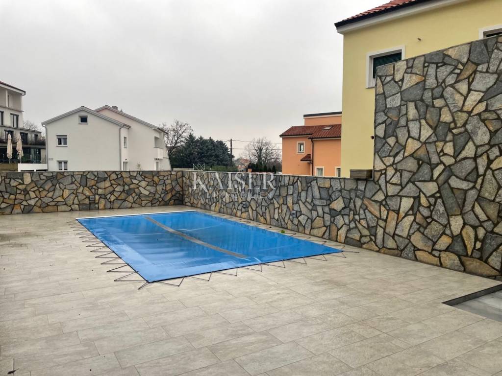 In its offer, Kaiser Immobilien presents a property in Matulji, in a newer building with three apartments. The apartment is located on the ground floor of the building, with a total living area of 150 m2, and consists of three bedrooms (each with its own bathroom), a spacious living room with access to the terrace, a kitchen with a dining room, an entrance hall and a laundry room. Heating and cooling is done by air conditioning. 2 attached parking spaces and garden of 200 m2. Excellent location, quiet, surrounded by greenery and other family houses. Close to all necessary amenities. For all other information, contact us.