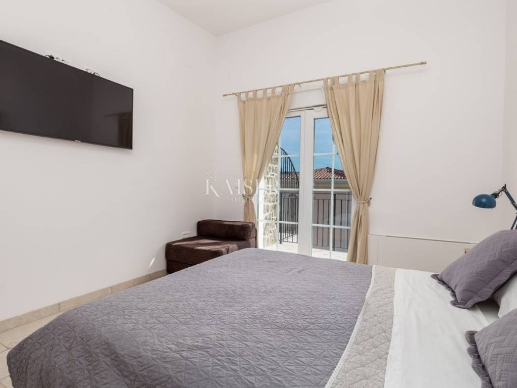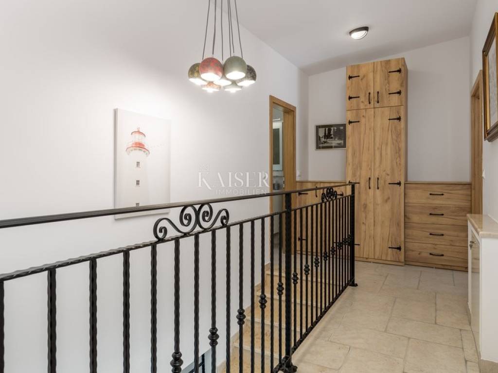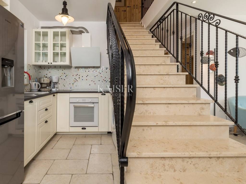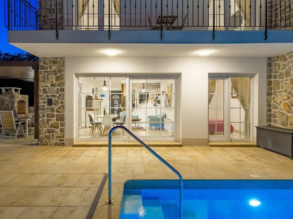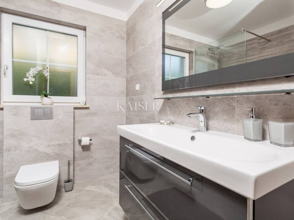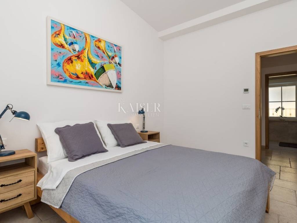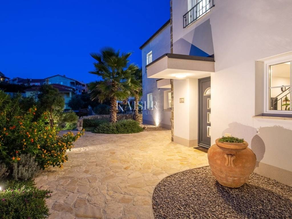 Kornić is a small town on the island of Krk, the first written mention of Kornić dates back to 1503. Kornić has approximately 350 permanent residents and is located about 6 km from the town of Krk and 3 km from Punt. Kornić has a beautiful view of Puntarska Vala and the islet of Košljun with the Franciscan monastery. This place offers rest and peace, idyllic nature and beautifully decorated beaches with a lot of facilities and is an ideal starting point for discovering the island, because all the bigger places on the island are really within reach from Kornić. Kaiser Immobilien presents you a beautiful two-story villa with a total living area of 110.23 m². This modern and spacious apartment offers everything you need for a comfortable and luxurious life, with the added advantage that all the new furniture remains in the apartment, allowing you to move in immediately and enjoy your new home. On the ground floor, with an area of 54.09 m², there is an entrance area, a fully equipped and modern kitchen, a dining room, a spacious living room, a space under the stairs, a hallway, a bathroom and one bedroom. The ground floor leads to a covered terrace of 5.38 m², ideal for relaxation. The first floor, which covers 54.53 m², contains two bedrooms, a wardrobe, a hallway and two more bathrooms. The first floor leads to a balcony of 2.70 m², which offers a beautiful view of the greenery and the sea. What makes this apartment stand out are the outdoor spaces. The apartment has a large terrace outside the building with an area of 51.51 m², perfect for enjoying the outdoors, and a garden with an area of 19.44 m², where you can create your own green corner. There is also an outdoor swimming pool with an area of 19.99 m², as well as an outdoor shower, which makes this space ideal for relaxation and fun during warm days, but also in winter due to the heating of the pool. Heating and cooling in the villa is ensured by underfloor heating and a heat pump, which guarantees pleasant temperatures throughout the year. The villa also has two parking spaces, each with an area of 12.50 m². This apartment represents a perfect combination of modern design, comfort and practicality, providing everything you need for a comfortable and luxurious life. Distances to facilities: Restaurant: 750m Shop: 600m Bakery: 250m Beach: 600m Marina Punat: 1.8 km Airport: 28 km Krk: 6 km Punat: 3km Distances to major cities: Kornić - Ljubljana: 150 km Kornić - Budapest: 500 km Kornić- Munich: 550 km Kornić- Vienna: 520 km Kornić- Prague: 850 km Agency commission for the buyer is 3% + VAT and is paid in case of real estate purchase, upon conclusion of the first legal deed. ID-CODE: 127-018 If you want to visit the property in person, please contact: Jennifer Hofmann E-mail: jennifer@kaiser-immobilien.hr Phone: +385-91-515-0887 http://kaiser-immobilien.hr/