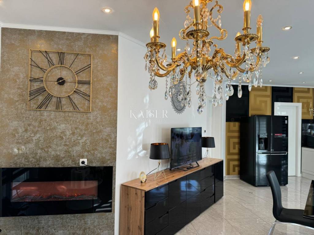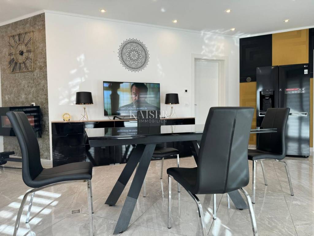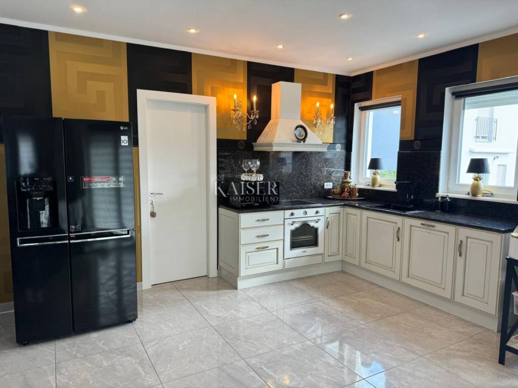 Above Opatija in Matulji, near the center of Matulji and all amenities such as shops, bus stations, pharmacies, banks, restaurants, libraries, schools, fitness centers, located in a quiet street surrounded by exclusive villas in an exceptional location with a sea view, we offer a newly built family house with a living area of 147.24 m2. The house consists of a ground floor and first floor with a usable living area of 147.24 m2 and an attic of approximately 50 m2. Upon entering the ground floor, an open space living room with a dining area and a kitchen decorated with designer Scavolini kitchen elements and top-notch technology opens up. In the living room, an electric fireplace creates a special atmosphere, which, in addition to its elegant appearance and warm atmosphere, also performs a heating function. The floors of the entire house are covered with designer quality large light gray tiles, as well as electric underfloor heating. In the living room and kitchen, the entire area of the space or a partial part of the living room and part of the kitchen can be heated according to desire and need. The lighting throughout the house is carefully arranged, especially in the dining room, kitchen and living room, so that the light intensity can be adjusted, and the placement of the lights creates an atmosphere of relaxation and warmth in the space, so that parts of the space can be illuminated separately. On the ground floor there is also a smaller bedroom with a bathroom and toilet. The shutters on the windows open with remote control. Internal stairs lead us to the first floor, where there are three bedrooms and a bathroom with a walk-in shower and toilet. Each bedroom on the first floor has access to a south-facing terrace and each has air conditioning and marble panels for heating the space. This excellent location, functionally and aesthetically decorated house, equipped with quality furniture and appliances, is offered furnished and can only be recommended without hesitation. The surroundings of the house are decorated with green areas and fruit tree plantations. Up to 4 vehicles can be parked in the house's garden. The house captivates with the simplicity of architectural lines and functionality of the space, as well as carefully selected materials in the space and neutral colors that enrich the space. To view this property, call +385916133776. This location is located 1h 30 min from major cities: Trieste 1h 30 min, Zagreb 1h 40 min, Ljubljana 2h, Vienna 4h 30 min, Berlin 10 h, Pula airport 1h 40 min, Krk island airport 35 min. drive by car.