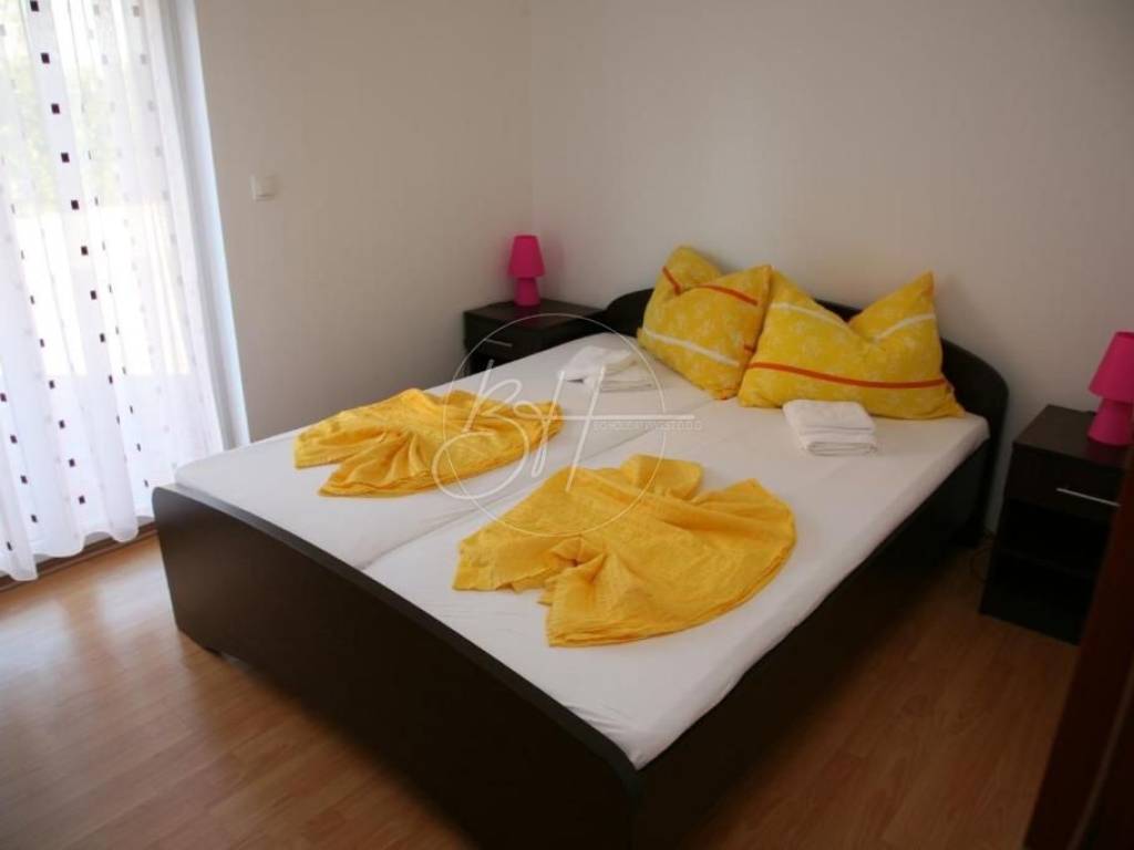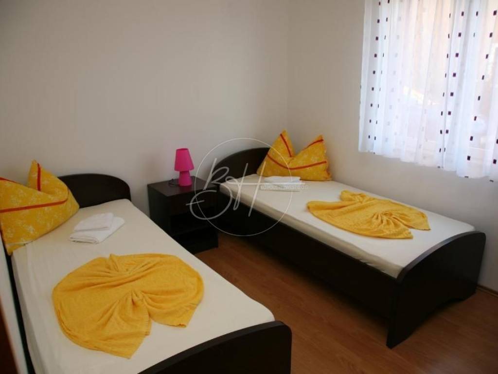 U prizemlju se nalaze dva apartmana od 45m2, a sastoje se od dnevnog boravka s kuhinjom i blagovanonom, 2 spavaće sobe i kupatila.