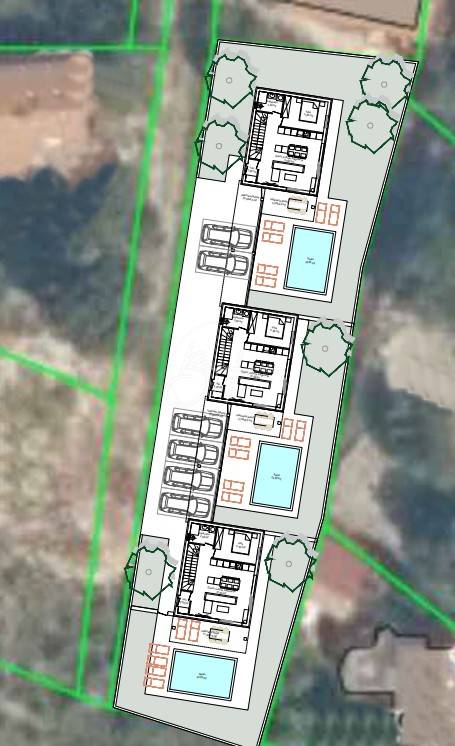 Izgrađenost čestice iznosi max cca 500 m2 (50%), a max iskorištenost 1,5 što znači da građevina može imati sveukupno cca 700 m2 BRP nadzemnog + podrum + bazen (opcija).